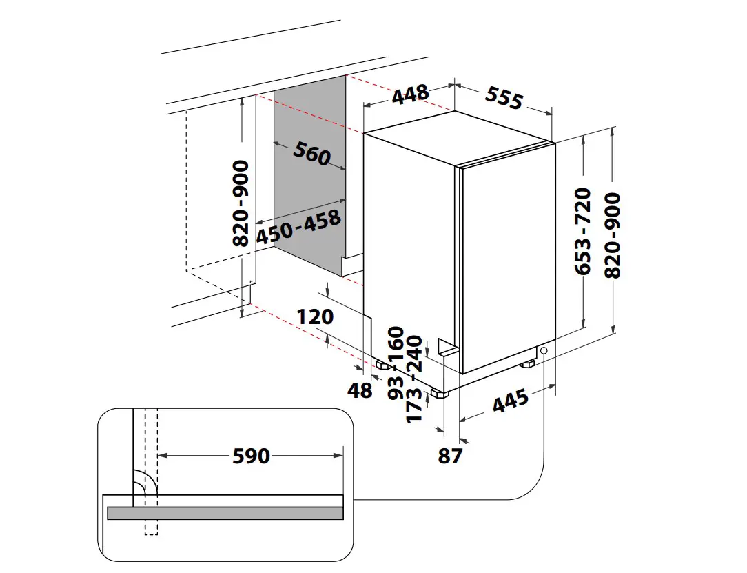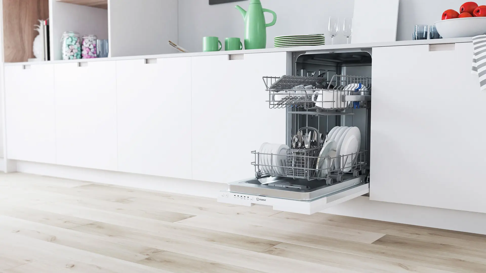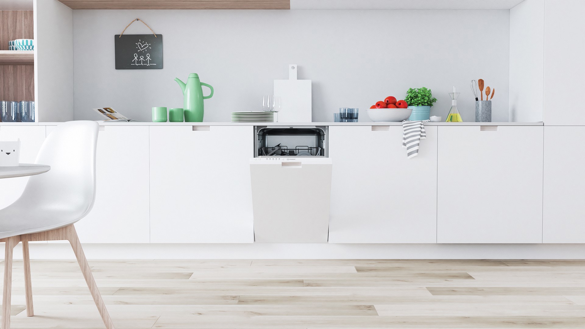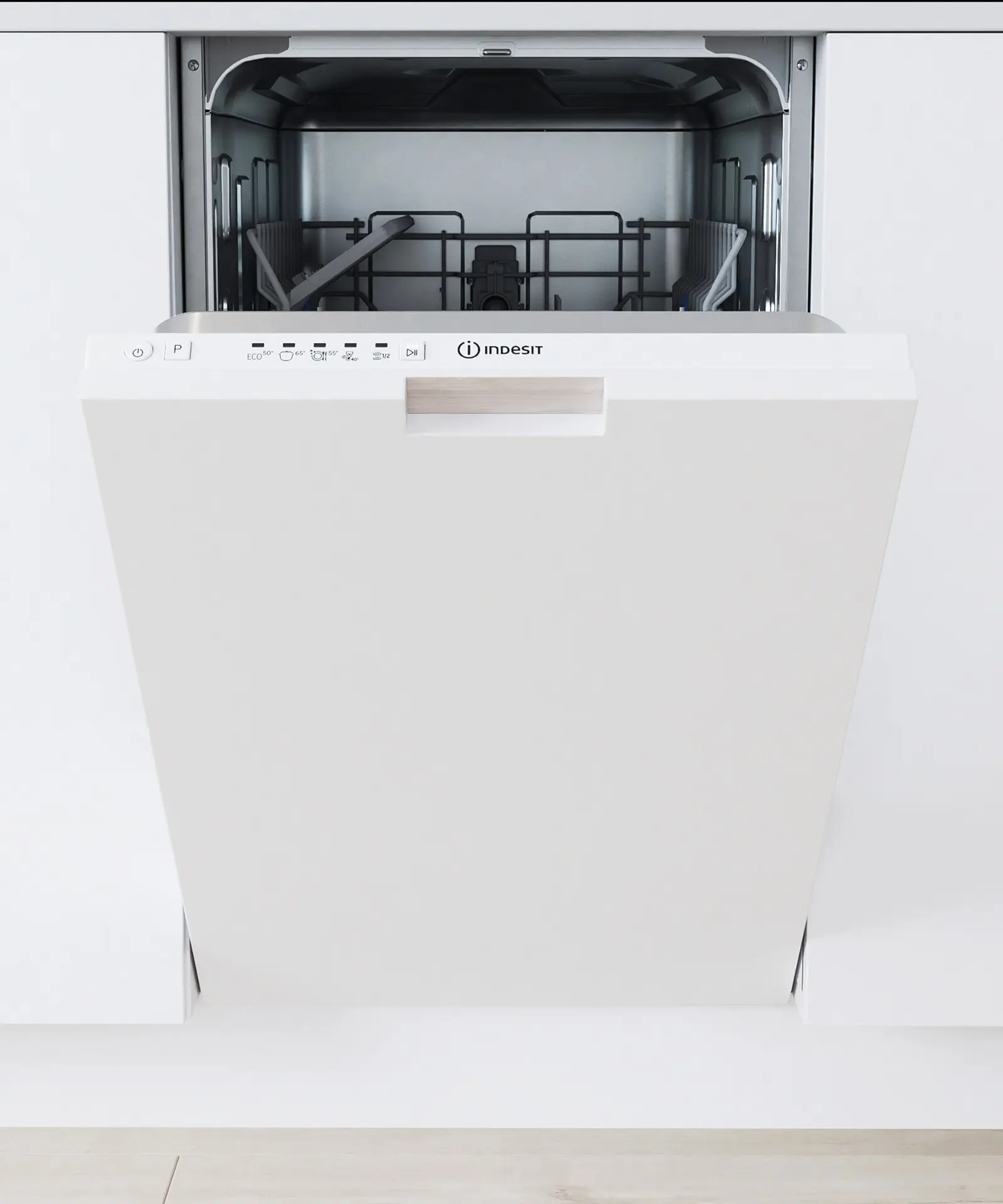 Indesit DI9E 2B10. Posizionamento dell'apparecchio: A scomparsa totale, Dimensione: Compatta (45 cm), Tipo di controllo: Pulsanti. Numero di coperti: 9 coperti, Classe emissione rumore: D, Emissione acustica: 51 dB. Classe efficienza energetica: F, Consumo di acqua per ciclo: 11,5 L, Consumo energetico per 100 cicli: 78 kWh. Larghezza: 448 mm, Profondità: 555 mm, Altezza: 820 mm. Larghezza imballo: 500 mm, Profondità imballo: 675 mm, Altezza imballo: 890 mm
