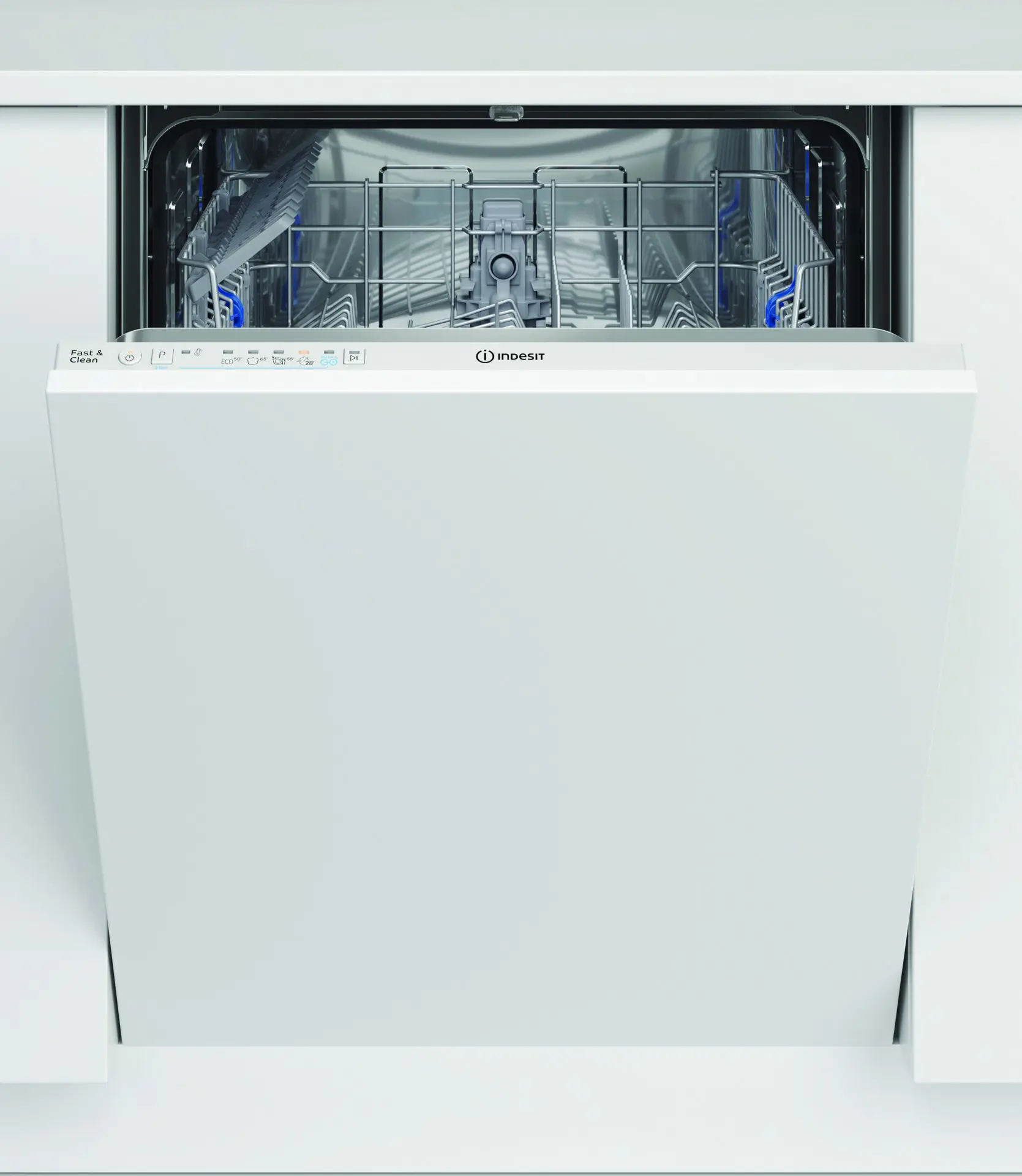 Indesit Lavastoviglie BI 60 cm classe D, 14 coperti, Push&Go, 46 dba. Posizionamento dell'apparecchio: A scomparsa totale, Dimensione: Dimensione massima (60 cm), Colore pannello di controllo: Bianco. Numero di coperti: 14 coperti, Classe emissione rumore: C, Emissione acustica: 46 dB. Classe efficienza energetica: D, Consumo di acqua per ciclo: 12 L, Consumo energetico per 100 cicli: 85 kWh. Larghezza: 598 mm, Profondità: 555 mm, Altezza: 820 mm. Larghezza imballo: 625 mm, Profondità imballo: 675 mm, Altezza imballo: 910 mm