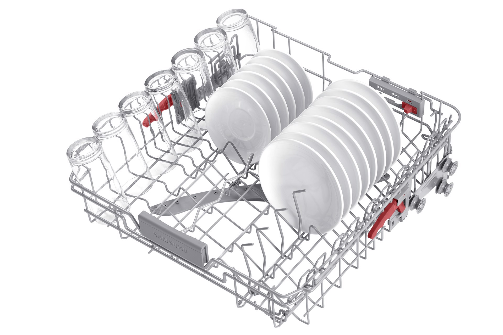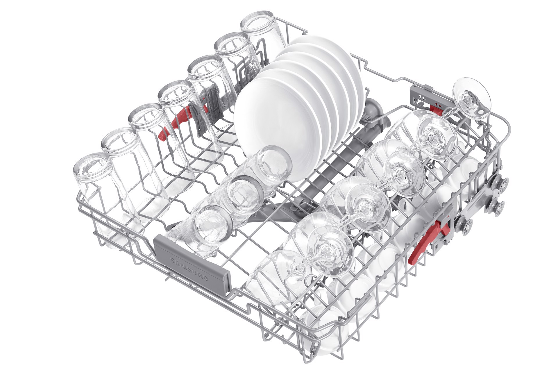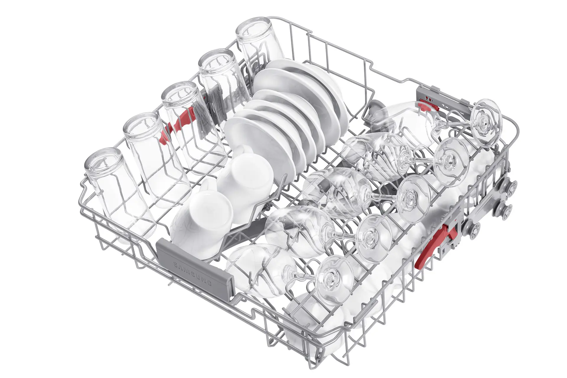 Sistema piatti, tazze e bicchieri in modo più facile e sicuro. I piedini del cestello intermedio possono essere regolati su 3 diverse angolazioni utilizzando unapposita leva, mentre quelli del cestello inferiore si piegano per fare posto a stoviglie di grandi dimensioni. E con lapposito Porta-bicchieri anche gli oggetti più delicati, come i calici, saranno al sicuro.