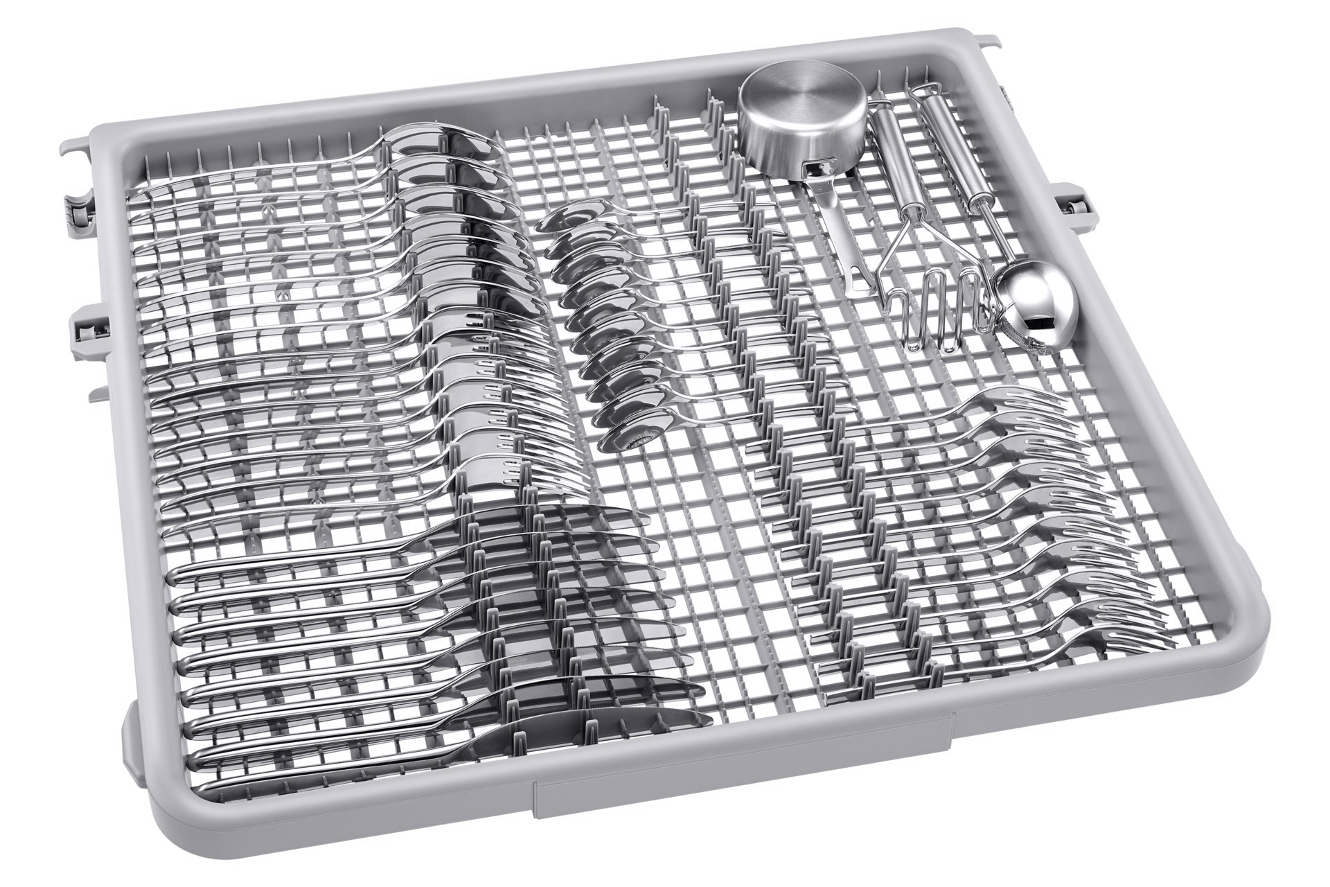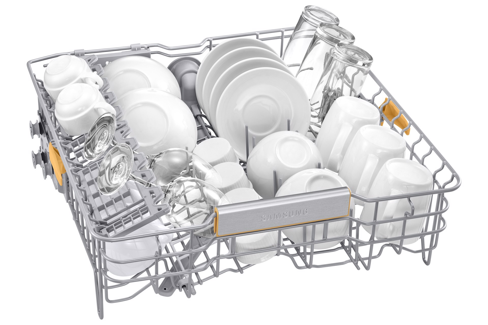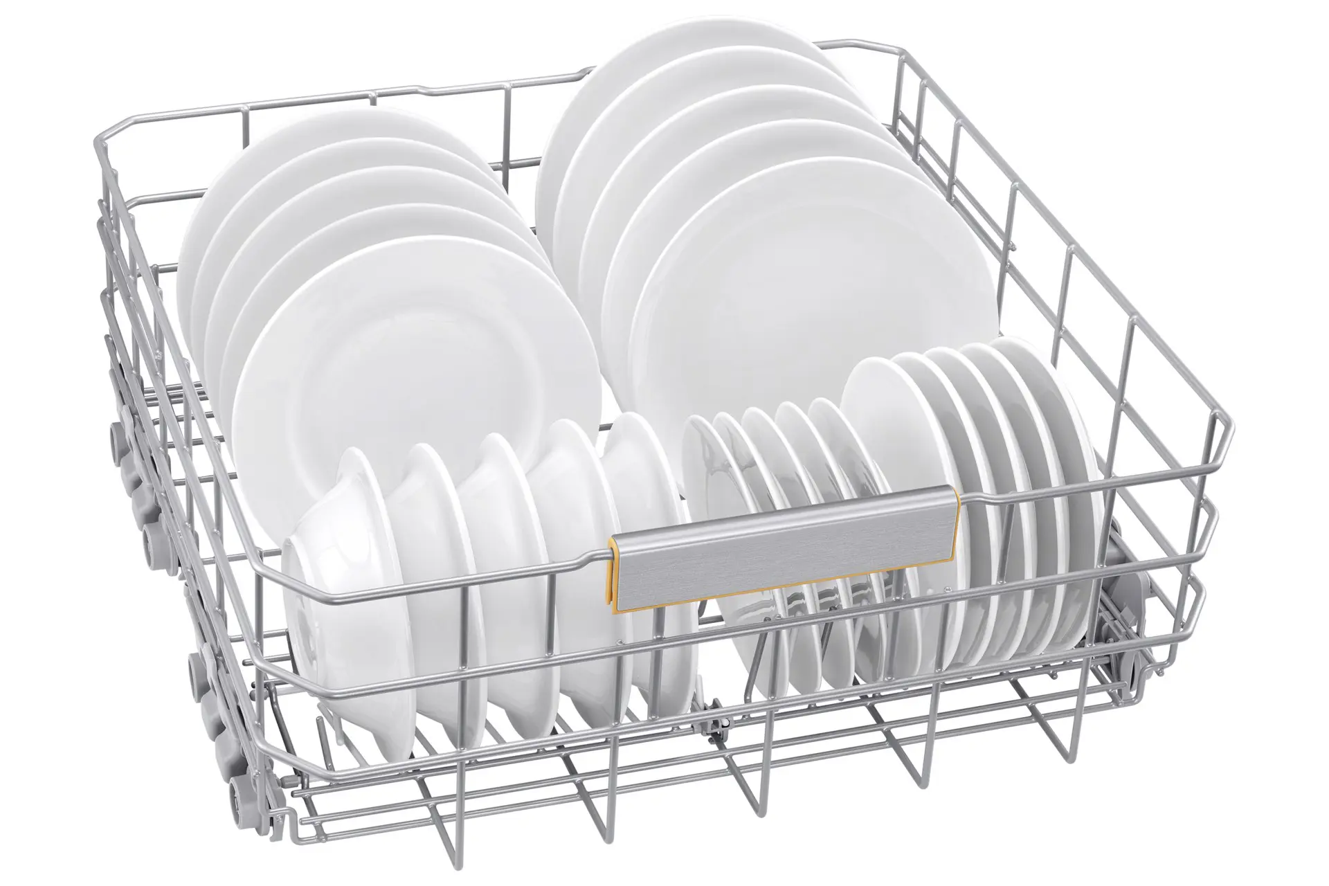 Carica piatti, bicchieri e tazze di diverse forme e dimensioni senza pensieri: il cestello centrale è regolabile in 3 diverse configurazioni grazie a una leva, ed è anche dotato di portabicchieri. Provvisto di denti ripiegabili, il cestello inferiore è perfetto per riporre piatti e ciotole in tutta sicurezza, mentre le stoviglie più grandi possono trovare posto sul fondo.