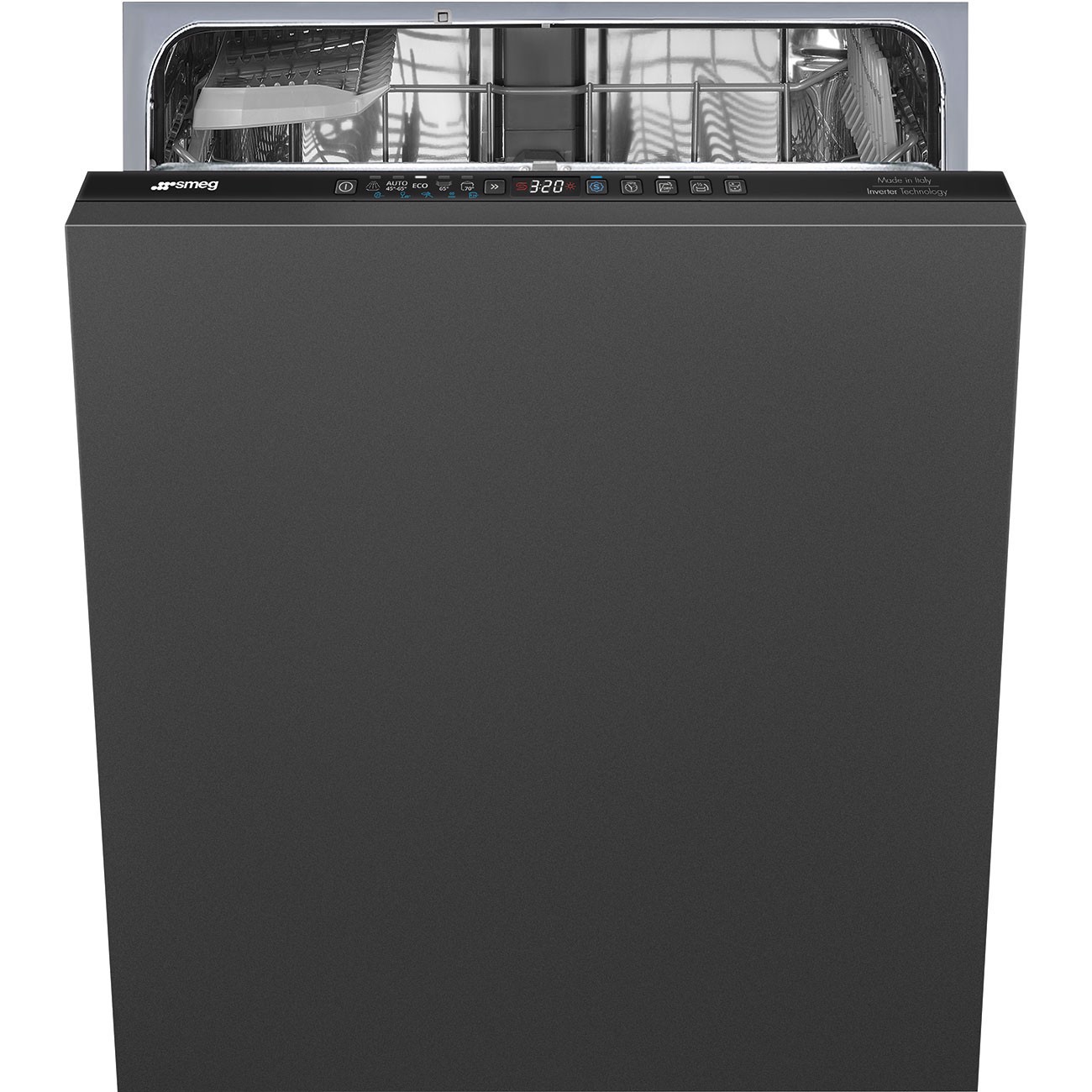 Smeg ST273CL. Posizionamento dell'apparecchio: A scomparsa totale, Dimensione: Dimensione massima (60 cm), Colore della porta: Nero. Numero di coperti: 13 coperti, Classe emissione rumore: C, Emissione acustica: 47 dB. Regolazione piedini: 7 cm. Classe efficienza energetica: C, Consumo di acqua per ciclo: 8,5 L, Consumo energetico per 100 cicli: 73 kWh. Larghezza: 598 mm, Profondità: 545 mm, Altezza: 818 mm