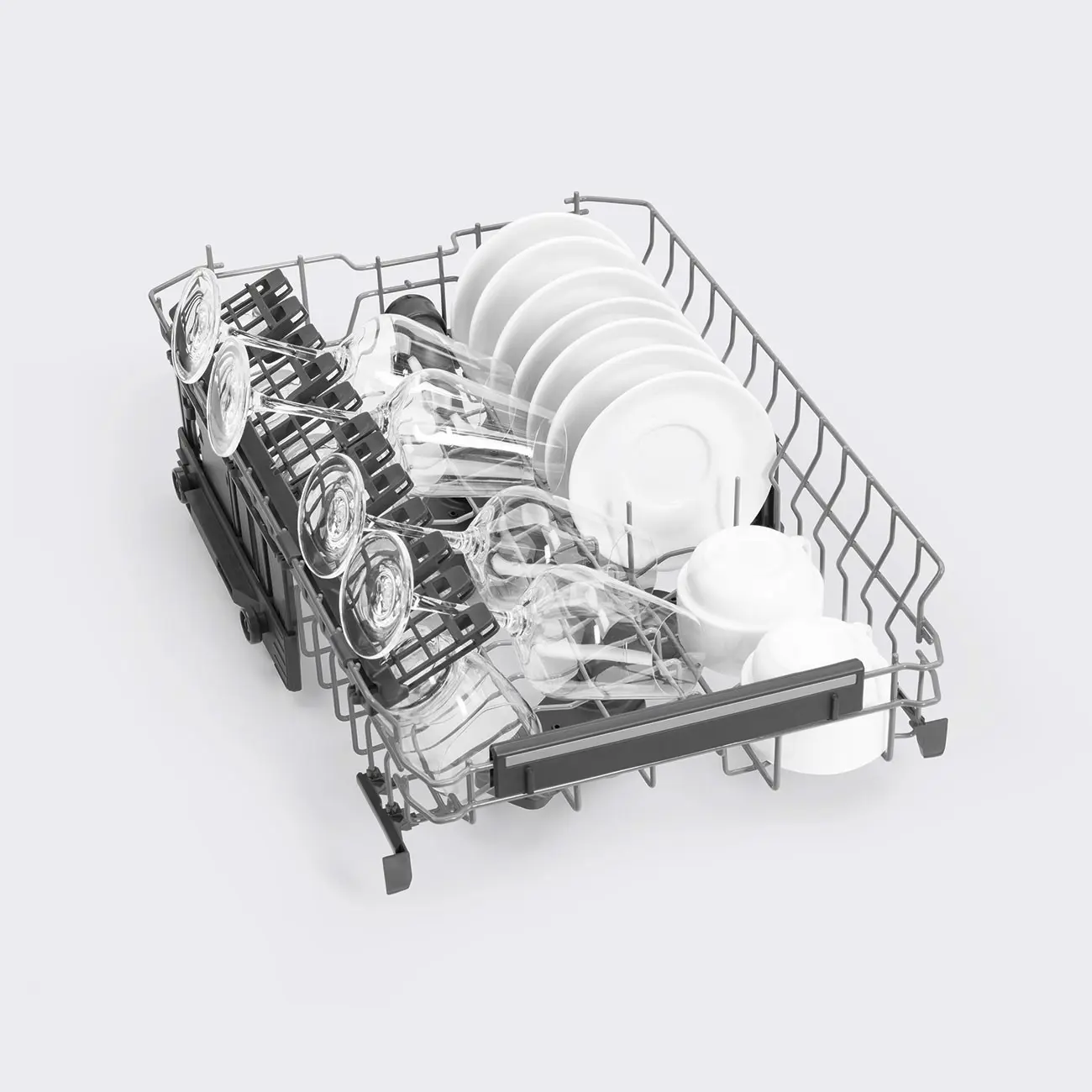 Il sistema di cerniere FlexiFit, permette l'agevole scorrimento dell'anta sulla porta della lavastoviglie, così da offrire maggiori alternative nella scelta della dimensione dello zoccolo, che potrà essere alto da 5 sino a 21,5 cm., e del pannello. La lavastoviglie si armonizza così con la linearità del mobile in cui è inserita, essendo l'anta e lo zoccolo pressochè a filo, con una distanza minima tra loro di soli 3 mm.