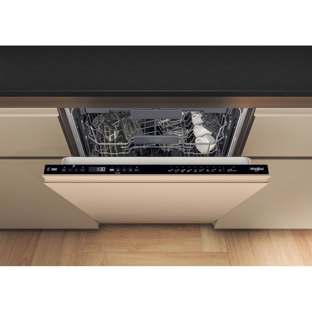 Whirlpool Lavastoviglie Maxispace BI 60 cm, classe A, 15 coperti, terzo cesto flessibile, A scomparsa totale, Dimensione massima (60 cm), Nero, Pulsanti, 1,3 m, 1,55 m