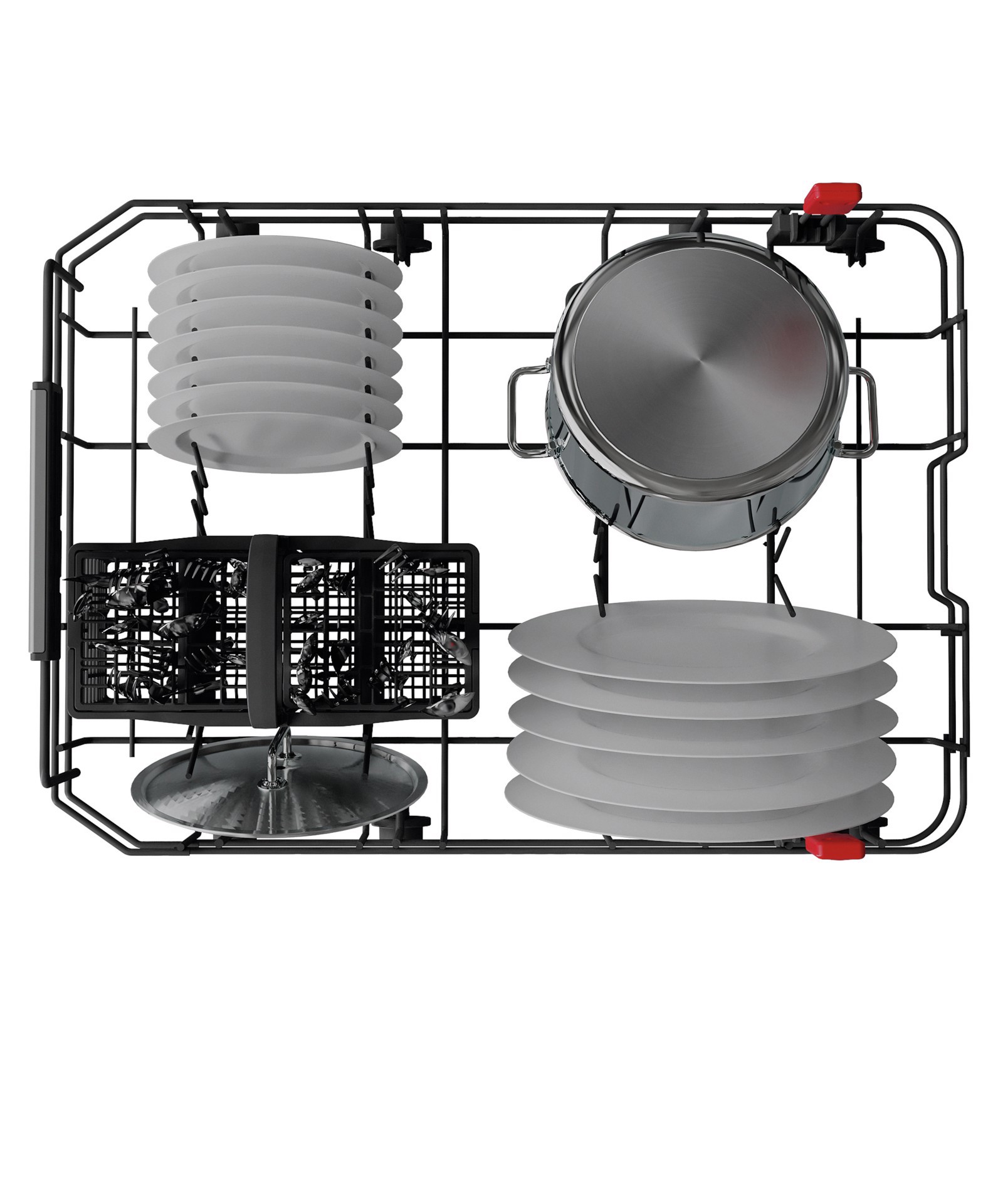 Posizionando in verticale pentole e padelle nel cestello inferiore è possibile caricare fino a 10 piatti in più riducendo il numero dei lavaggi e risparmiando tempo e risorse.