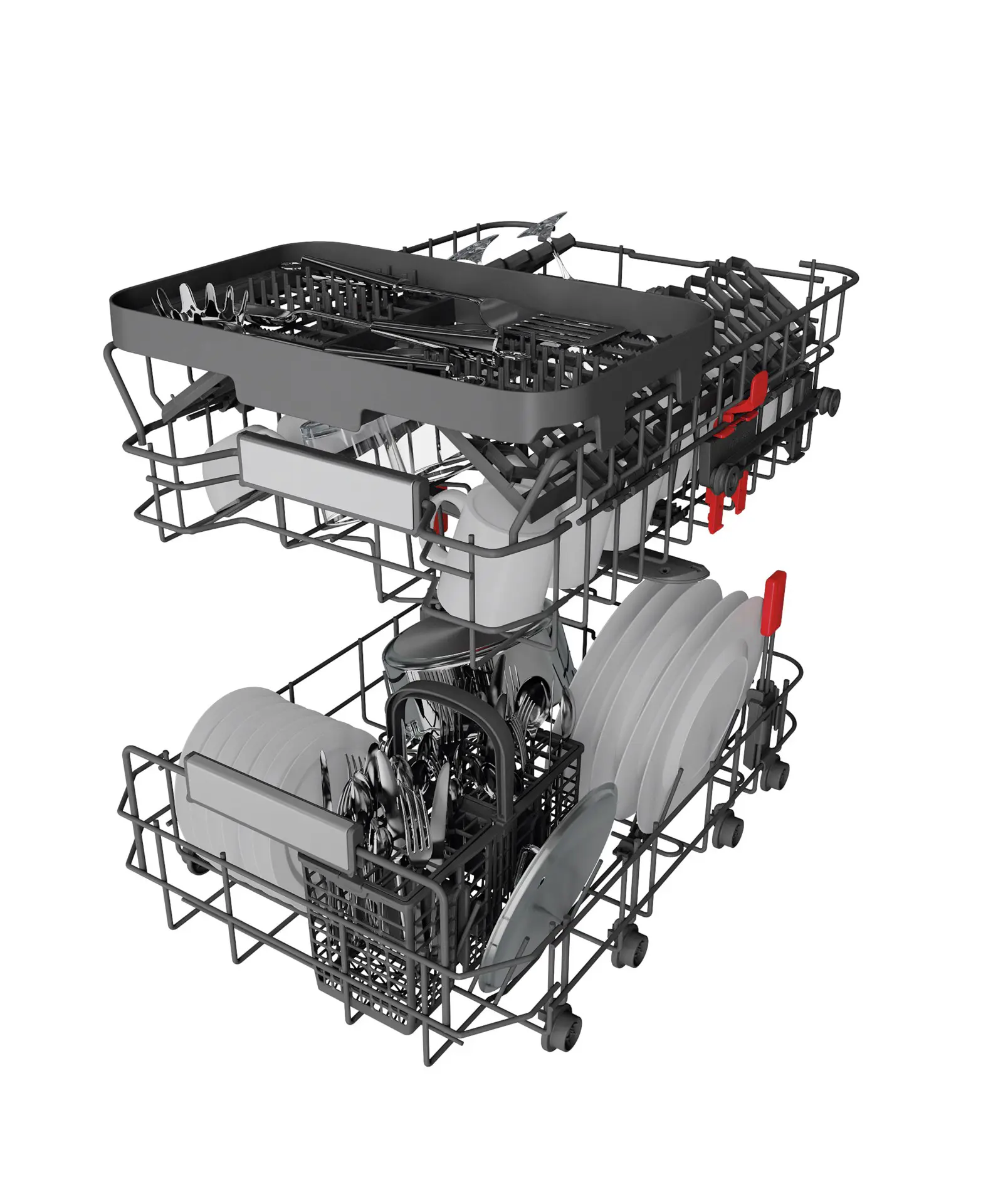 Nuovo design di pregio con l'uniformità di colore di tutti i cestelli e maniglia premium per un'ottima estrazione del cestello. Cestelli modulari, flessibili e removibili: sistema con guide telescopiche del cestello superiore per una facile estrazione e per agevolare il carico con la massima stabilità; adattabilità in altezza del cestello superiore, anche a pieno carico.