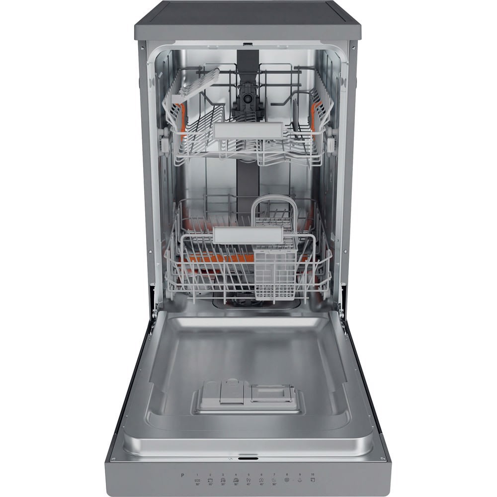 Caratteristiche di questa lavastoviglie Hotpoint Ariston: 45 cm di larghezza, un gran numero di coperti e una dimensione piccola e compatta, per poter avere tutto lo spazio necessario, all’interno e all’esterno dell'elettrodomestico. Classe di efficienza energetica C. Ridottissimo consumo d'acqua e design ergonomico e compatto. Color argento. Tecnologia innovativa che garantisce un funzionamento super silezioso, per un elettrodomestico senza rumori.