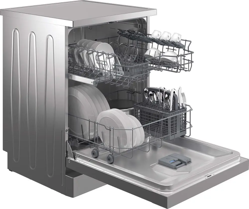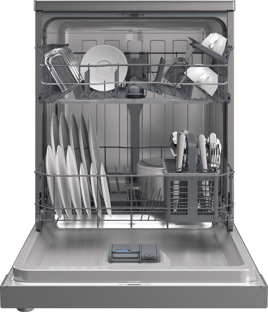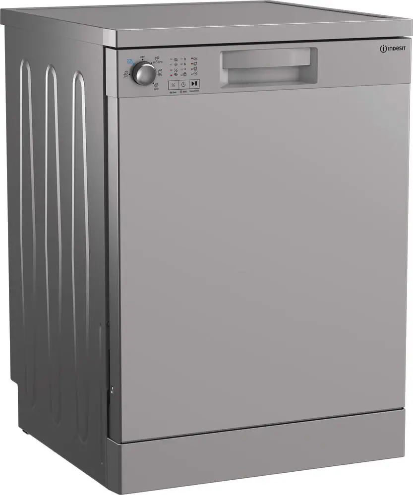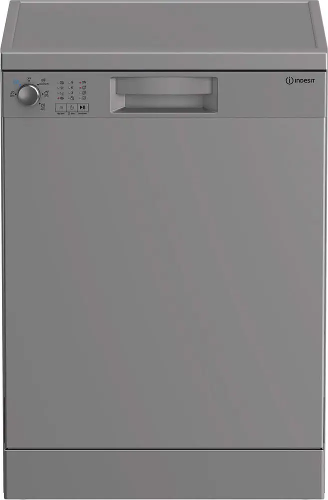 Indesit IN2FE13DT9S, lavastoviglie 60cm, Classe E, 13 coperti, Silver. Posizionamento dell'apparecchio: Libera installazione, Dimensione: Dimensione massima (60 cm), Colore della porta: Argento. Numero di coperti: 13 coperti, Classe emissione rumore: D, Emissione acustica: 51 dB. Classe efficienza energetica: E, Consumo di acqua per ciclo: 12,9 L, Consumo energetico per 100 cicli: 94 kWh. Larghezza: 600 mm, Profondità: 600 mm, Altezza: 850 mm. Tecnologie Indesit (lavaggio stoviglie): Fast&Clean, Push&Go