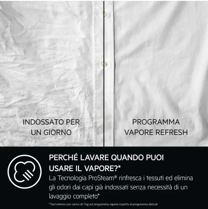 * Test interno con un carico da 1 kg con il programma a vapore invece che il programma delicati.