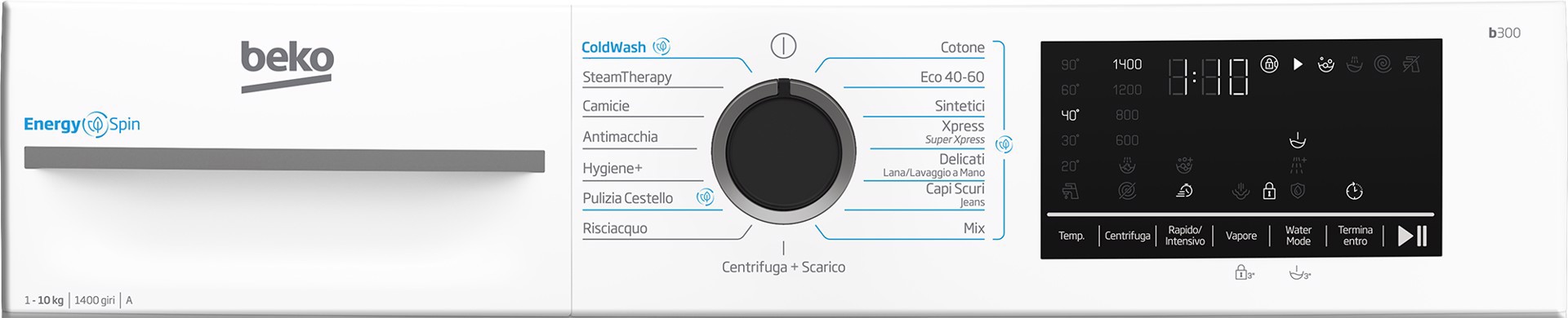 | Tecnologie Beko (cura dei vestiti) | SteamCure, OptiSense, SteamTherapy, Aquawave |