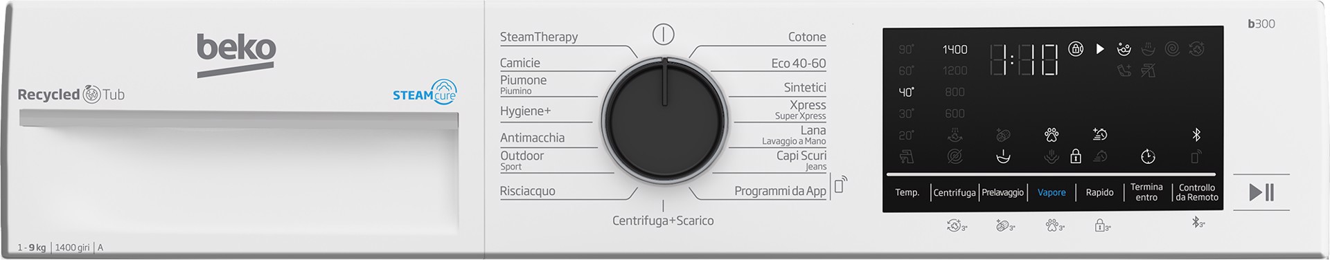 | Tecnologie di lavaggio Beko | Fast+, HomeWhiz, Tecnologia ProSmart™ Inverter Motor, StainExpert, SteamCure, SteamTherapy |