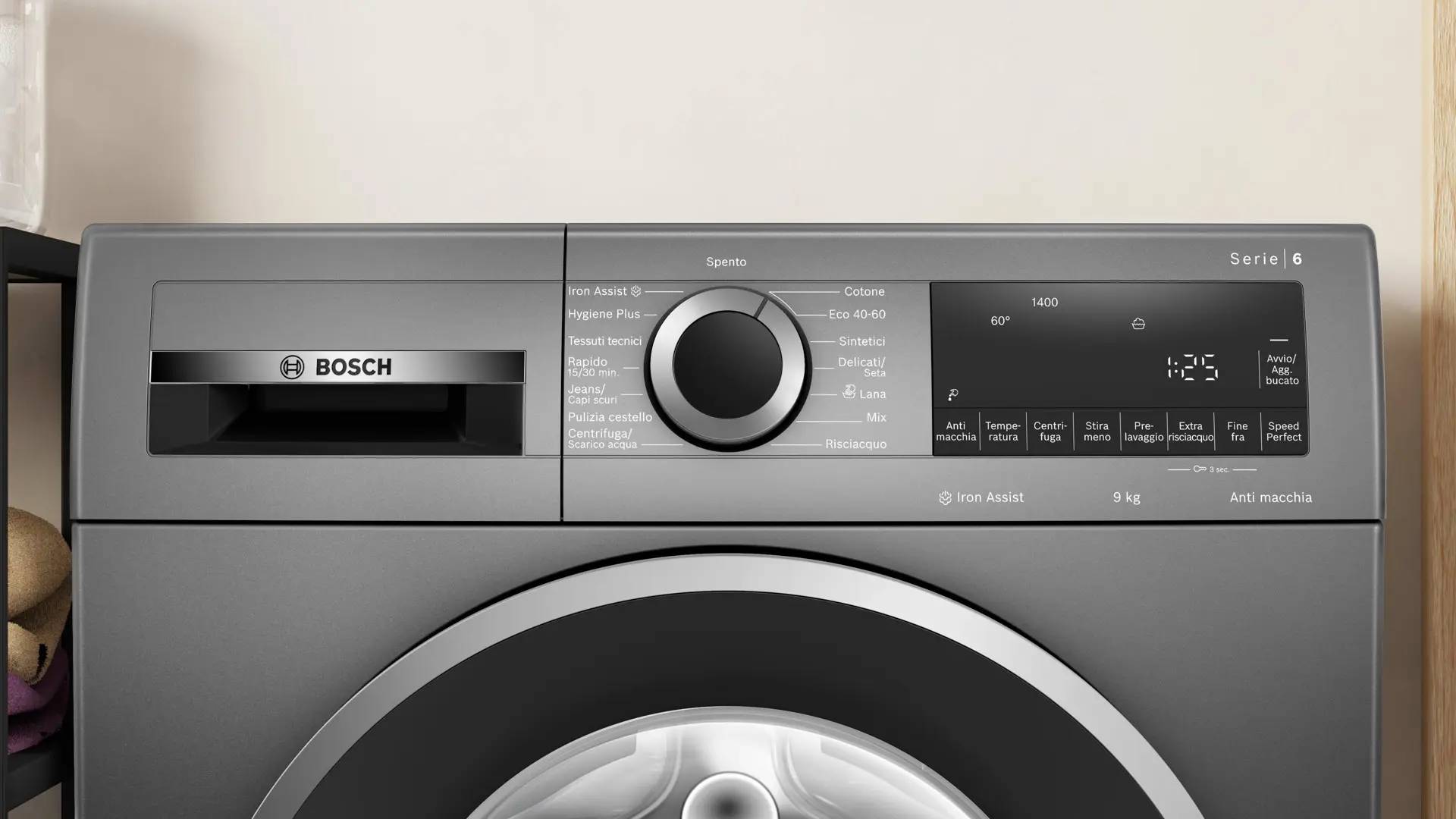 | Tecnologie Bosch (cura dei vestiti) | ActiveWater Plus, EcoSilence Drive™, Iron Assist, SpeedPerfect |