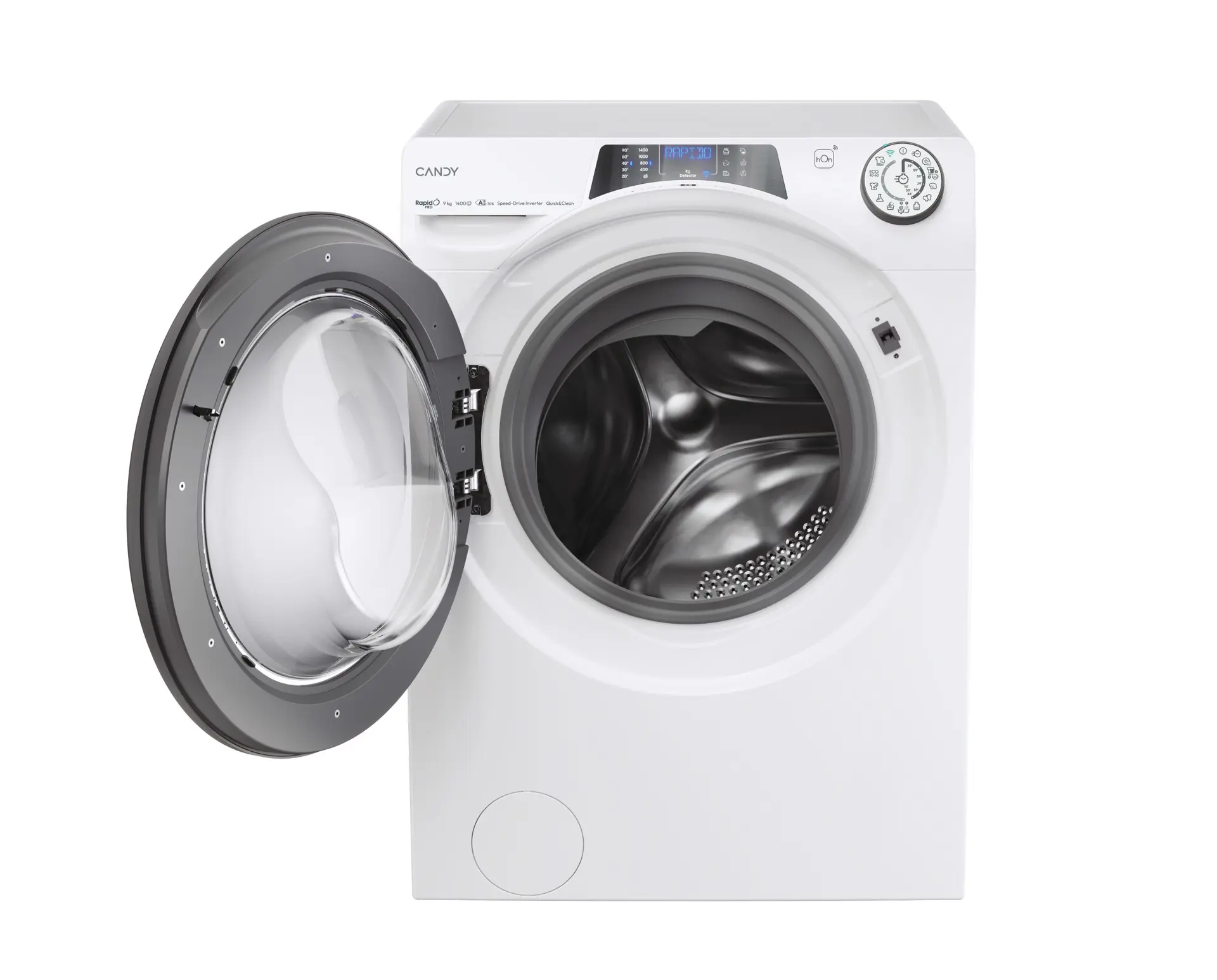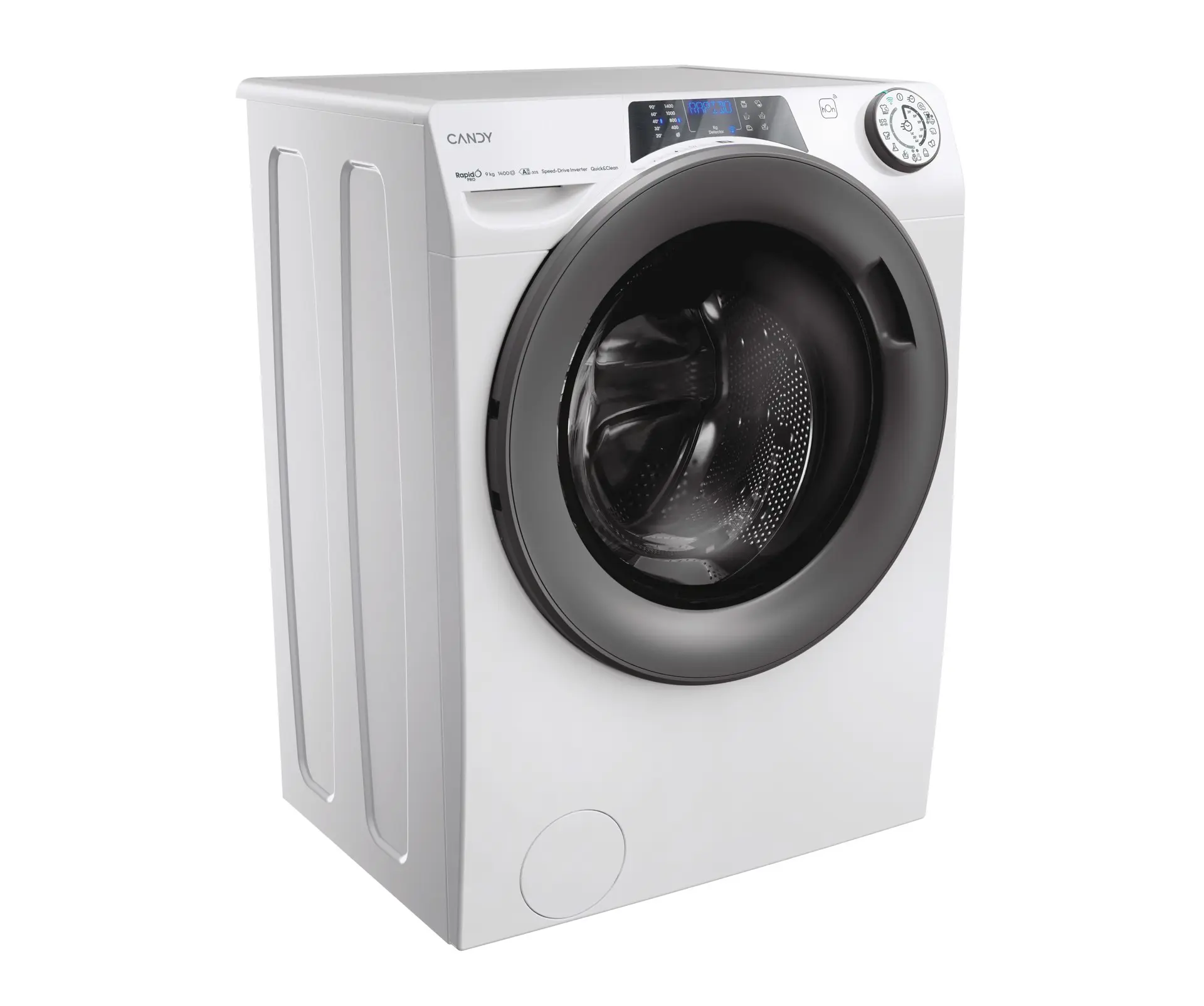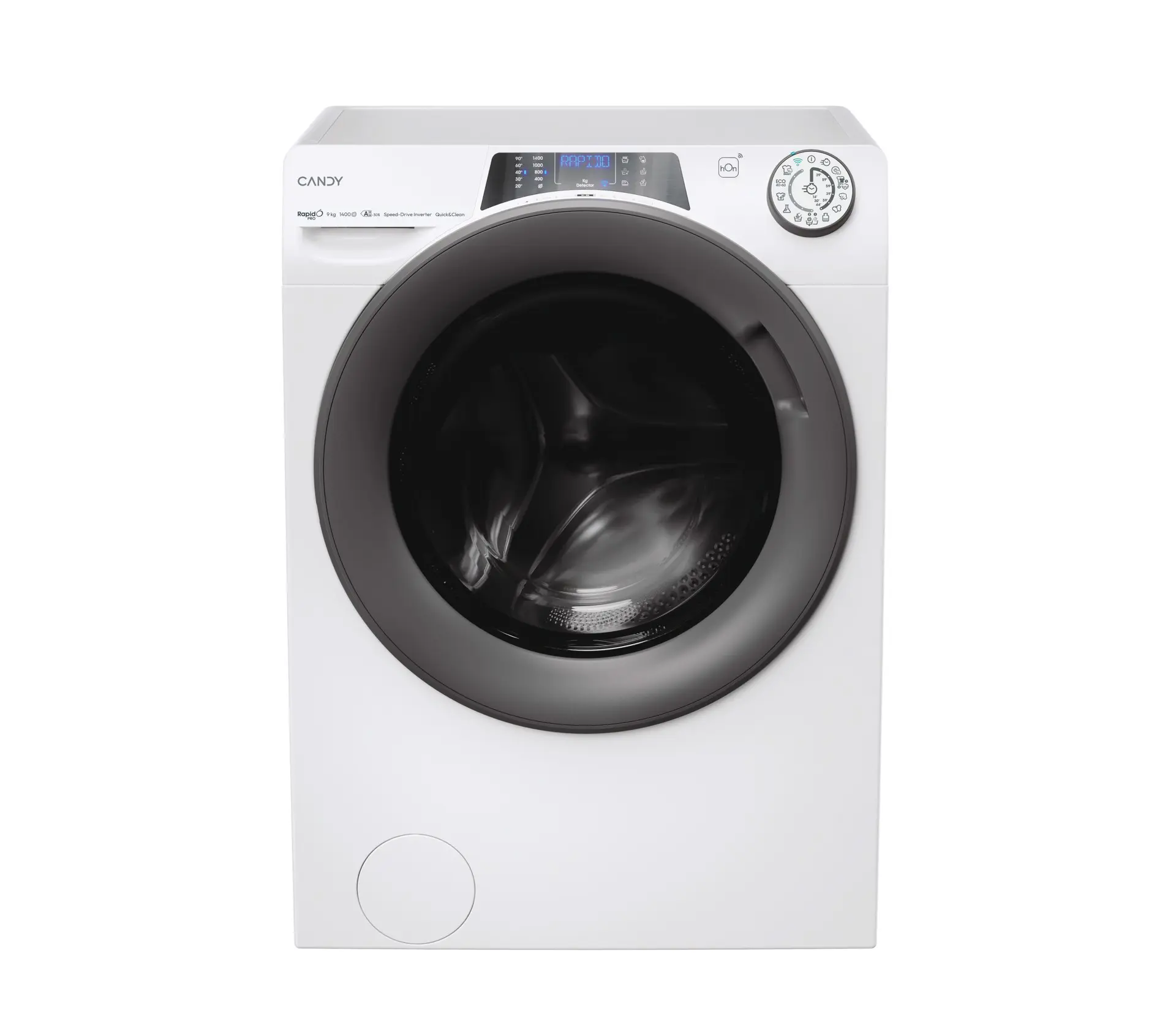Candy RapidÓ PRO RP 496BWMR9/1-S. Tipo di carica: Caricamento frontale. Capacità cestello: 9 kg, Classe di efficienza della centrifuga: B, Silenziosità (centrifuga): 76 dB, Velocità di centrifuga massima: 1400 Giri/min. Colore del prodotto: Bianco. Larghezza: 600 mm, Profondità: 540 mm, Altezza: 850 mm. Classe efficienza energetica: A