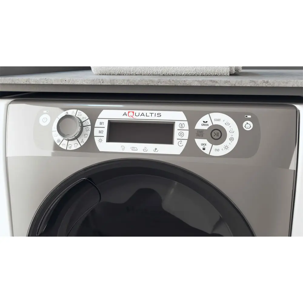 Hotpoint AQD1072D 697 EU/A N, Caricamento frontale, Libera installazione, Bianco, Destra, Argento, LCD