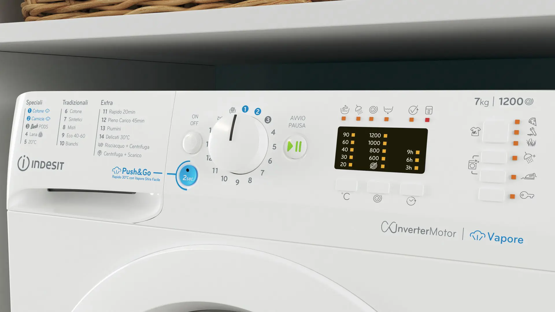 Indesit BWA 71296X WV IT. Tipo di carica: Caricamento frontale. Capacità cestello: 7 kg, Classe di efficienza della centrifuga: B, Silenziosità (centrifuga): 77 dB, Velocità di centrifuga massima: 1200 Giri/min. Colore del prodotto: Bianco. Larghezza: 600 mm, Profondità: 580 mm, Altezza: 850 mm. Classe efficienza energetica: A