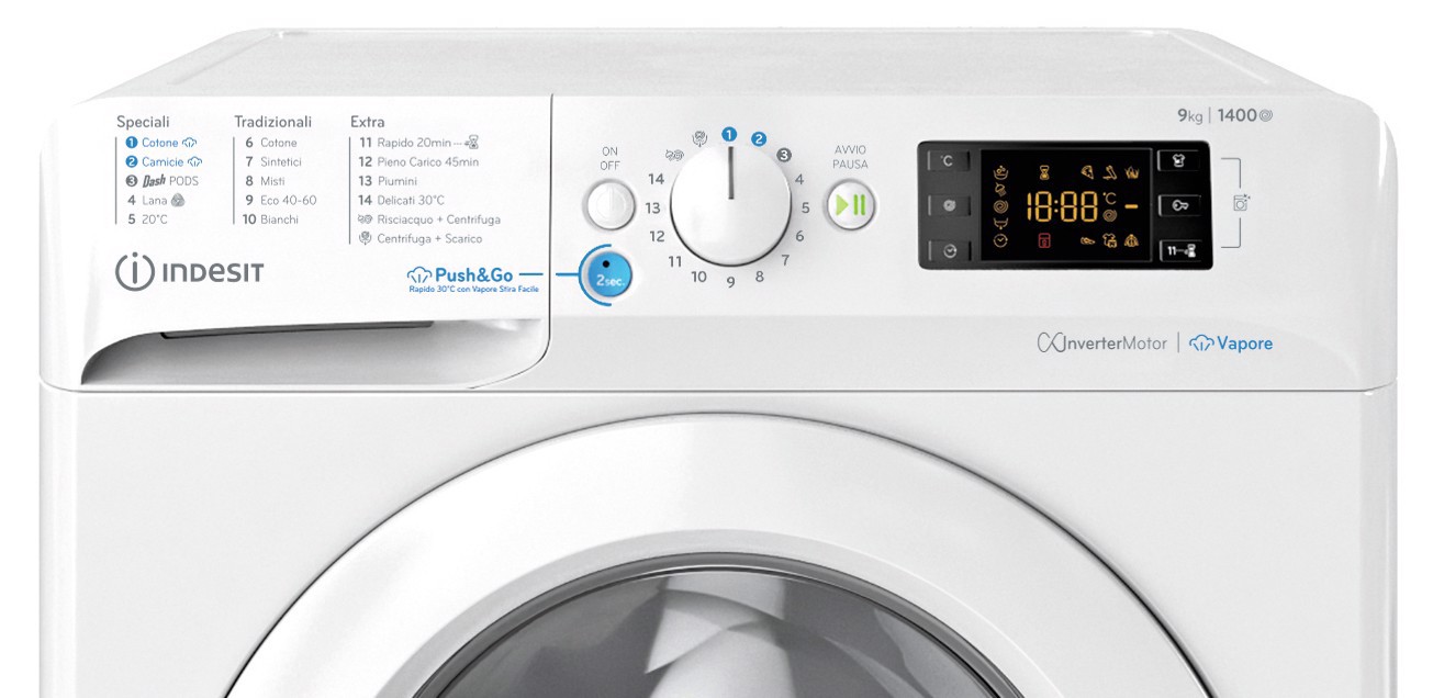 Indesit BWE 91497X WV IT. Tipo di carica: Caricamento frontale. Capacità cestello: 9 kg, Classe di efficienza della centrifuga: B, Silenziosità (centrifuga): 78 dB, Velocità di centrifuga massima: 1400 Giri/min. Colore del prodotto: Bianco. Larghezza: 595 mm, Profondità: 630 mm, Altezza: 850 mm. Classe efficienza energetica: A