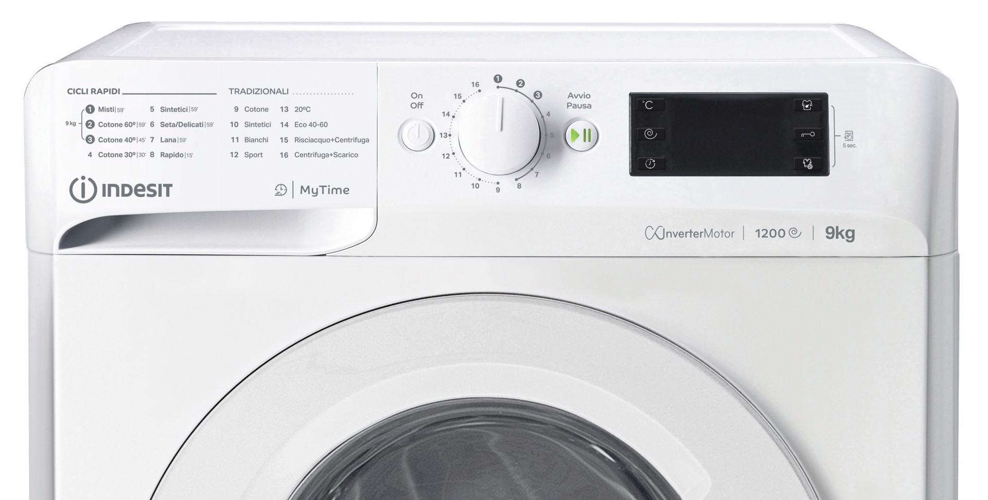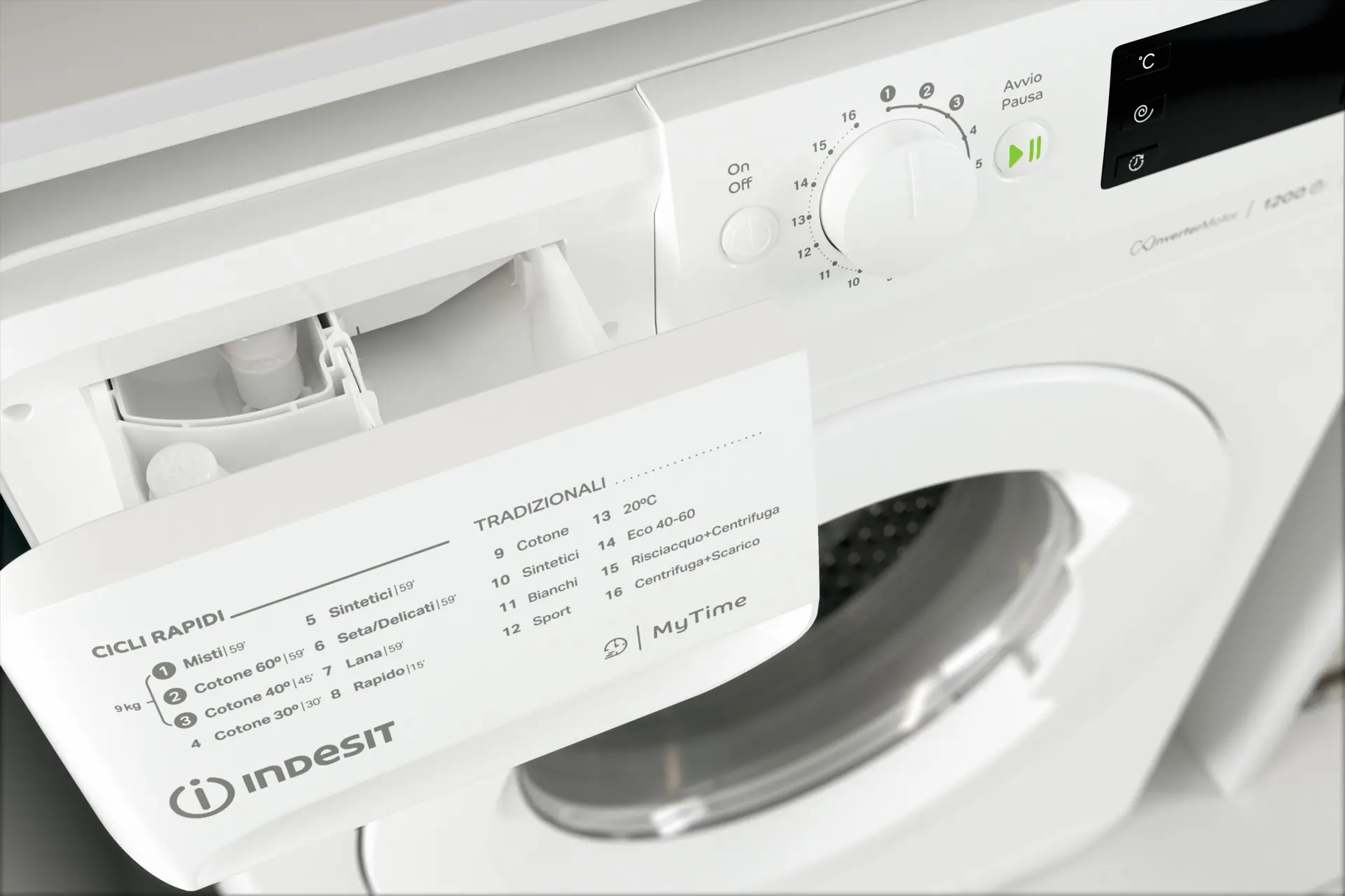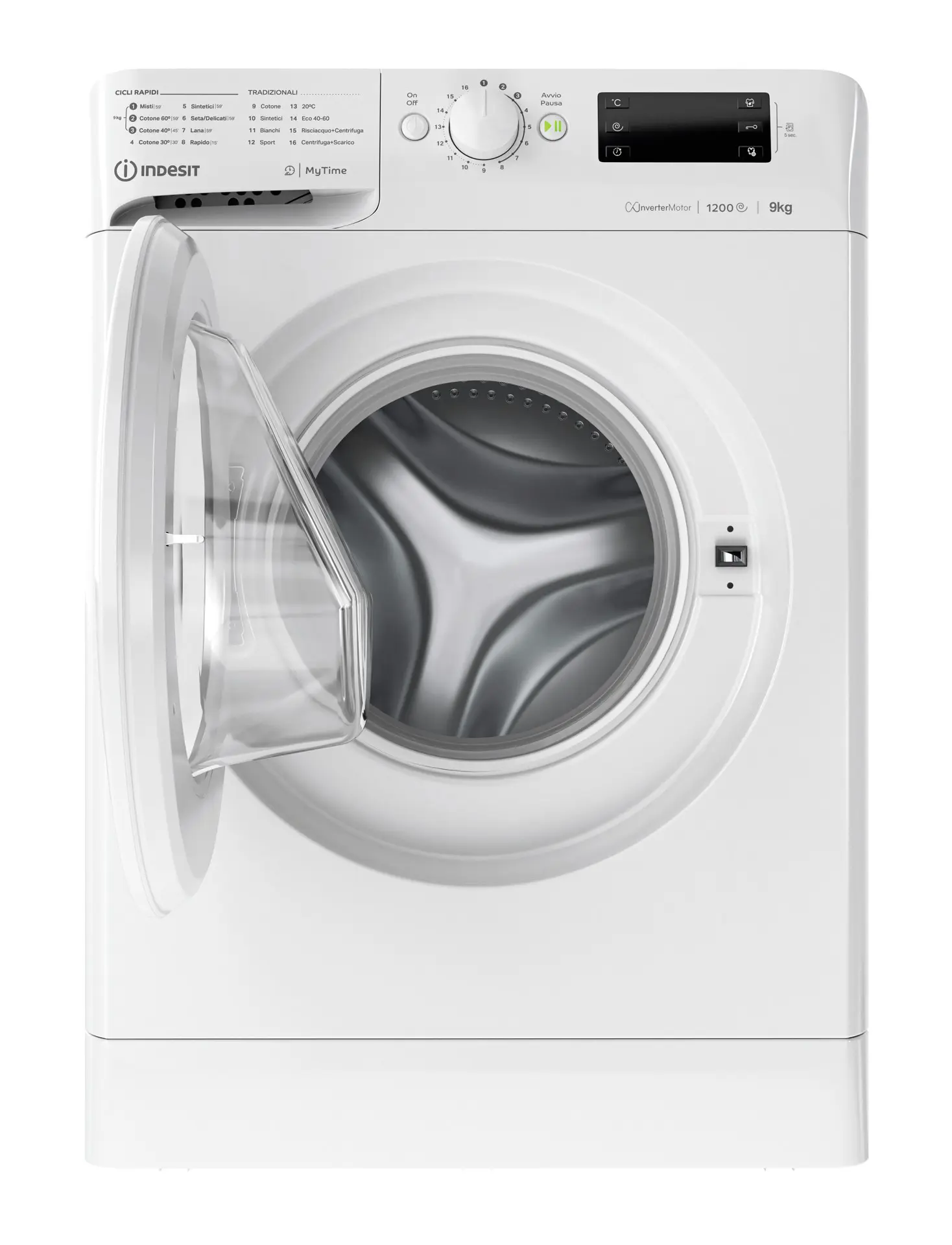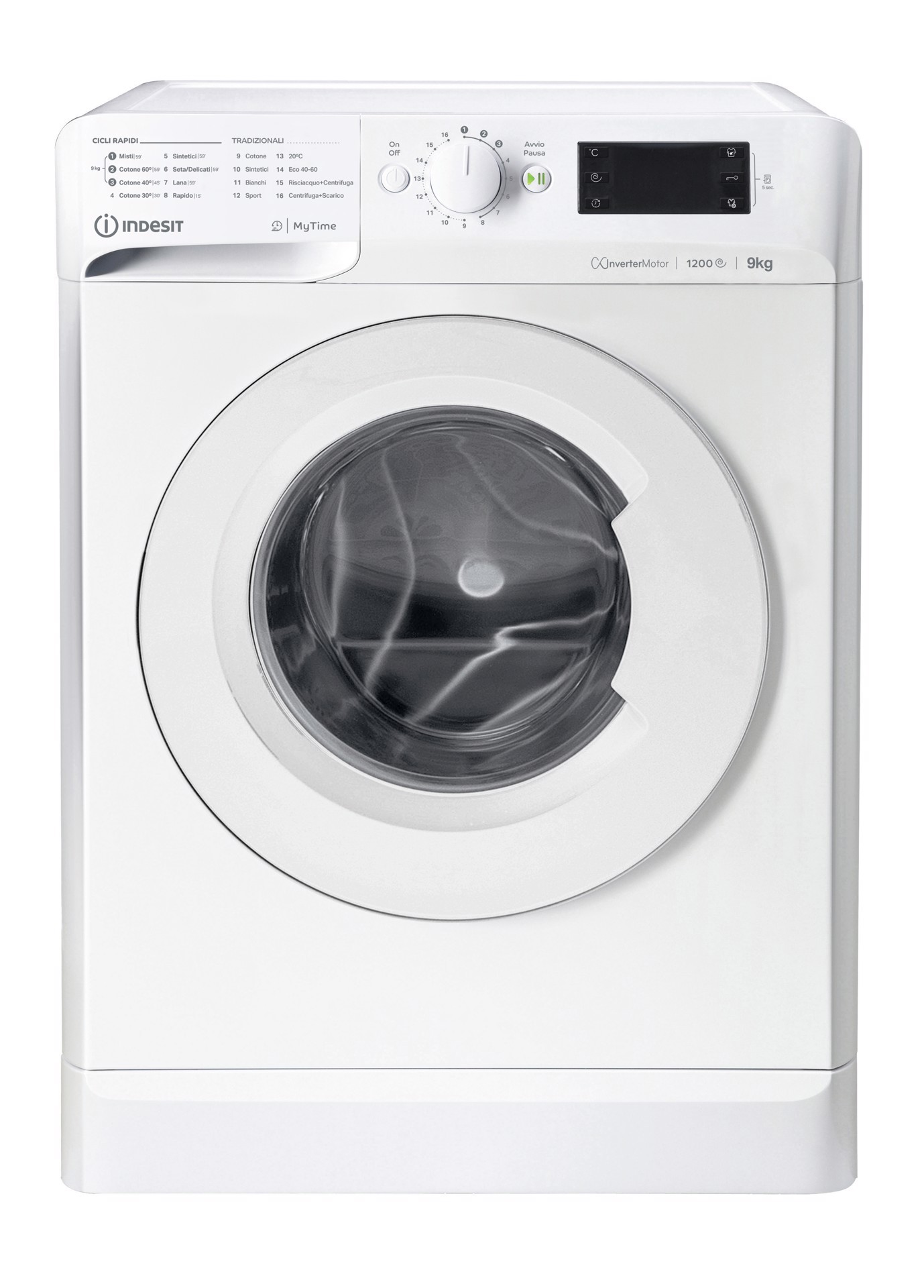 Indesit MTWE 91285 W IT. Tipo di carica: Caricamento frontale. Capacità cestello: 9 kg, Classe di efficienza della centrifuga: B, Silenziosità (centrifuga): 75 dB, Velocità di centrifuga massima: 1200 Giri/min. Colore del prodotto: Bianco. Larghezza: 595 mm, Profondità: 605 mm, Altezza: 850 mm. Classe efficienza energetica: B