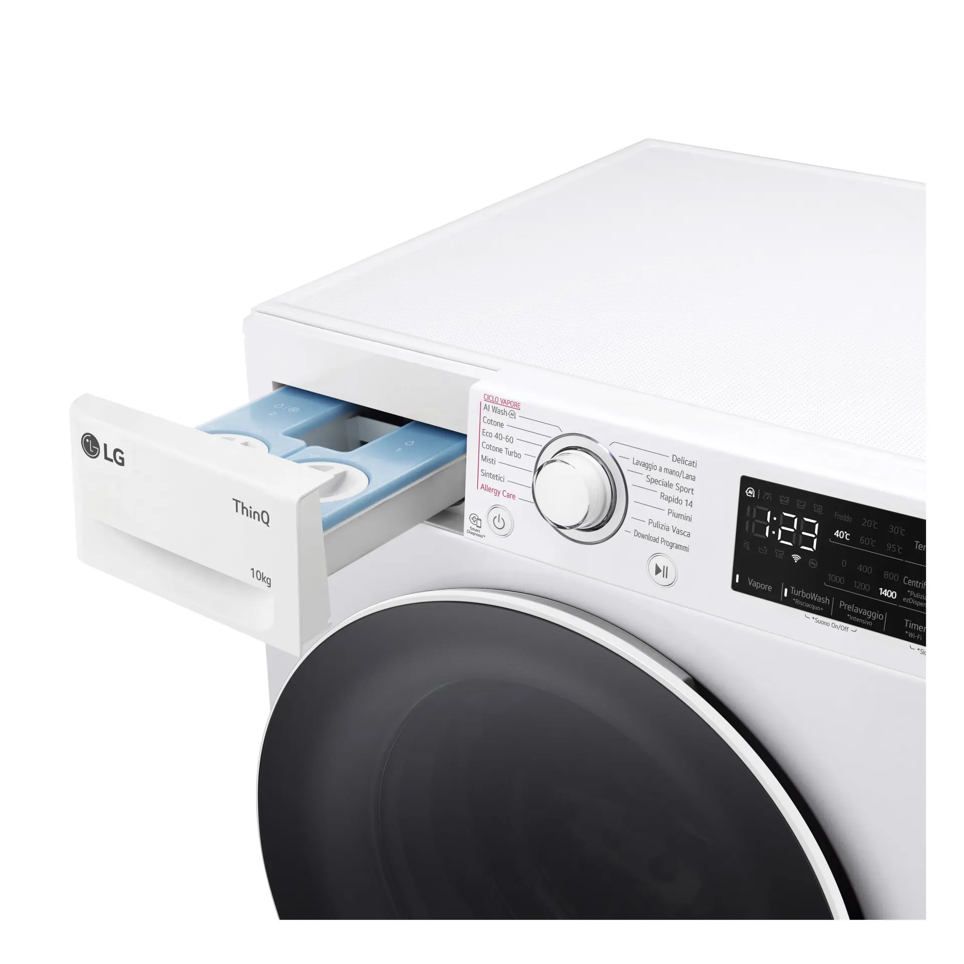 | Tecnologie LG (cura dei vestiti) | AI DD™, EZDispense™, Steam™ |