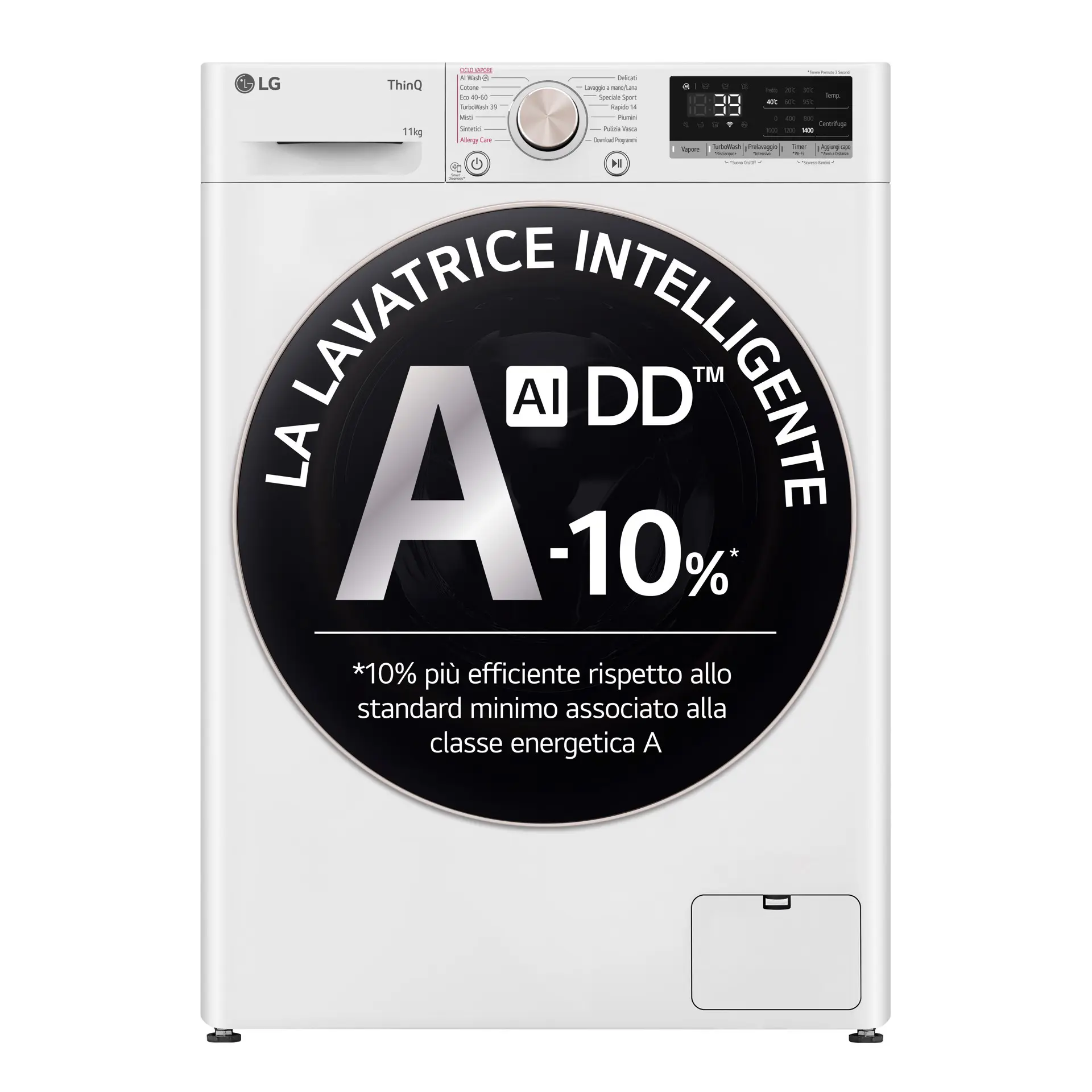 *AI Direct Drive è disponibile in 3 cicli (Cotone, Tessuti misti, Easy Care).
