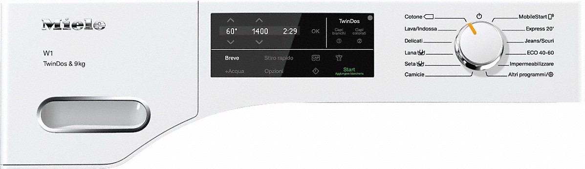Il dosaggio automatico con TwinDos non è solo pratico, ma garantisce al contempo una pulizia perfetta: con UltraPhase 1 e 2 la macchina in dotazione diventa il miglior sistema per detersivi liquidi. TwinDos dosa UltraPhase 1 e 2 al momento giusto durante il lavaggio, ottenendo così la massima efficacia di lavaggio. Inoltre TwinDos effettua un dosaggio preciso permettendo di risparmiare, rispetto al dosaggio manuale, fino al 30 % di detersivo.