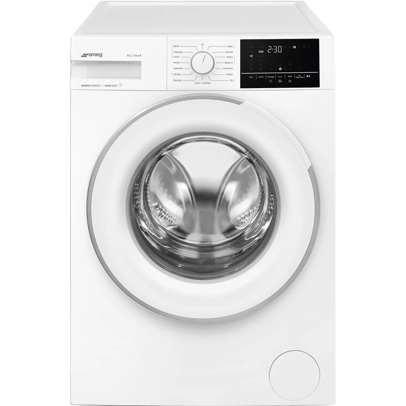 Smeg WN84SEA. Tipo di carica: Caricamento frontale. Capacità cestello: 8 kg, Classe di efficienza della centrifuga: B, Silenziosità (centrifuga): 72 dB, Velocità di centrifuga massima: 1400 Giri/min. Colore del prodotto: Bianco. Larghezza: 600 mm, Profondità: 580 mm, Altezza: 840 mm. Classe efficienza energetica: A