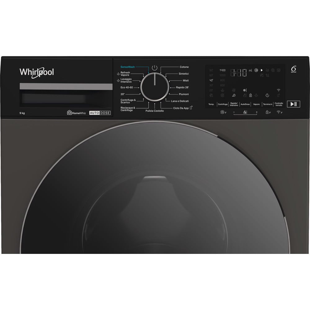 Caratteristiche di questa lavatrice a libera installazione Whirlpool: cestello spazioso e ampio da 9,0 kg. Classe energetica A. Centrifuga a 1400 giri al minuto, rapida ed efficiente. Esclusiva tecnologia 6° SENSO che adatta dinamicamente le impostazioni in base alle caratteristiche di ciascun carico, garantendo una cura ideale per tutti i tessuti. Lavaggio rapido 30 minuti.