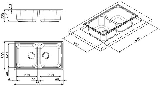 Dimensioni seconda vasca (LxL): 371 x 420 mm