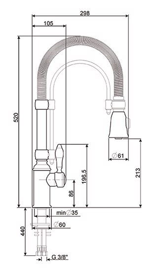 Smeg MIDR7RA-2, Rame, Leva sanitaria, Singolo, G3/8, 6 cm, 52 cm