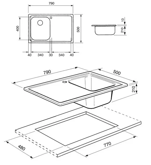 Dimensioni prima vasca (LxL): 340 x 400 mm