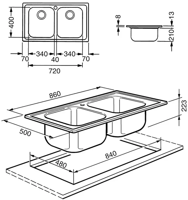 Dimensioni seconda vasca (LxL): 340 x 400 mm
