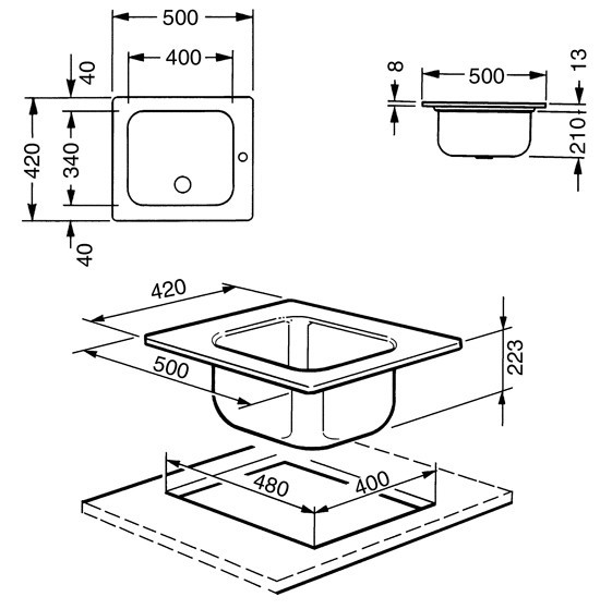 Dimensioni prima vasca (LxL): 340 x 400 mm