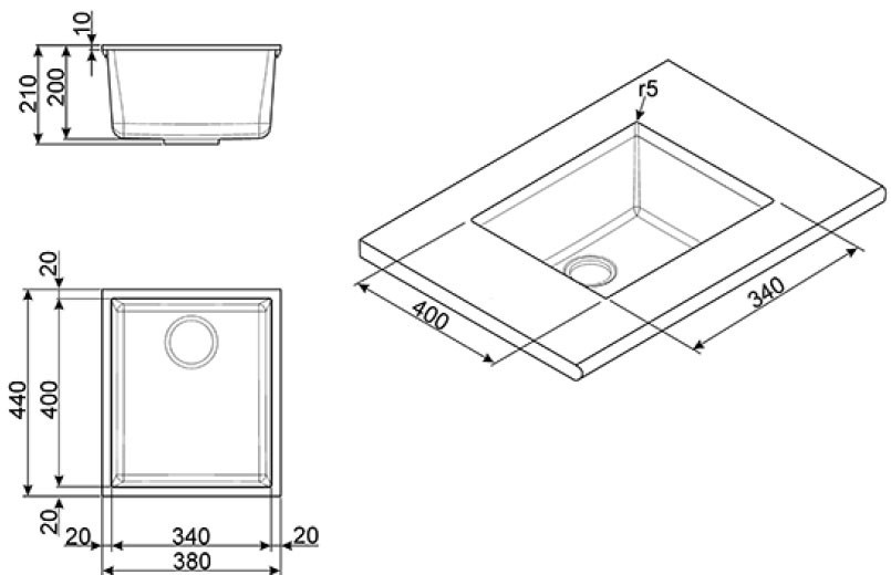 Numero di vasche per lavello: 1 ciotole