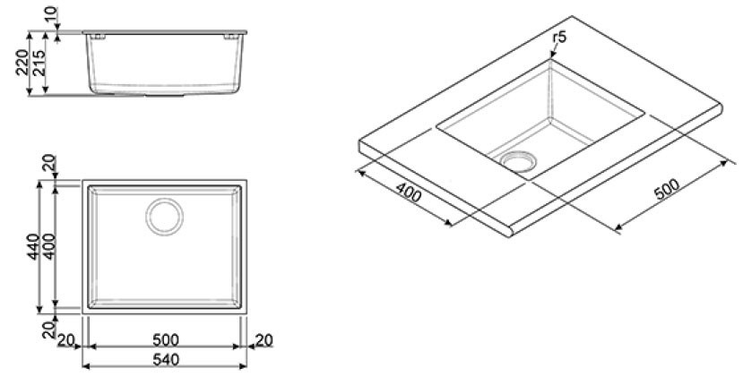 SMEG VZUM57B lavello Sintetico