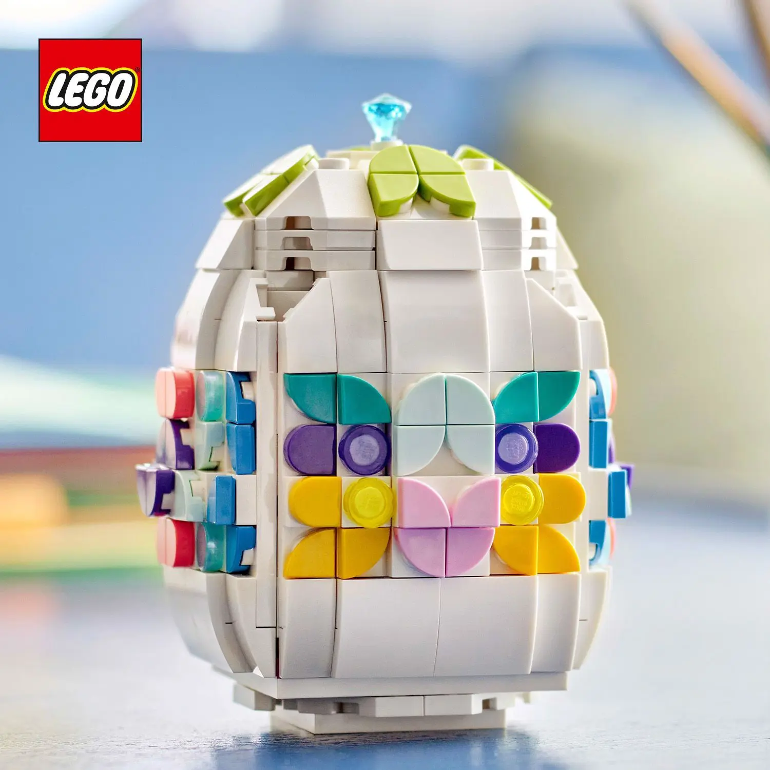 Decorazione primaverile LEGO®: il set include un uovo di Pasqua costruibile con parte superiore rimovibile, pietre preziose speciali cuori dorati, oltre a spazio all’interno per contenere pezzi extra