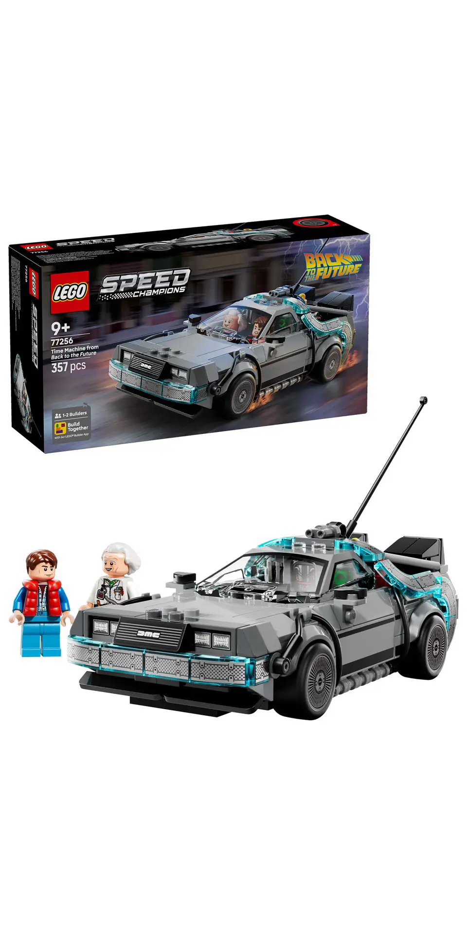 Il kit del modello di auto Macchina del tempo di Ritorno al futuro LEGO® Speed Champions (77256) consente ai bambini dai 9 anni in su di costruire, esporre e ricreare l’azione dell’iconico franchise cinematografico. Quest'auto giocattolo in mattoncini include molti dei famosi dettagli del modello dei film popolari.