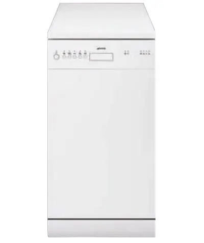 Smeg LSA4511BIN. Posizionamento dell'apparecchio: Libera installazione, Dimensione: Compatta (45 cm), Colore della porta: Bianco. Numero di coperti: 10 coperti, Classe emissione rumore: C, Emissione acustica: 47 dB. Classe efficienza energetica: F, Consumo energetico per 100 cicli: 83 kWh, Scala di efficienza energetica: Da A a G. Larghezza: 450 mm, Altezza: 820 mm