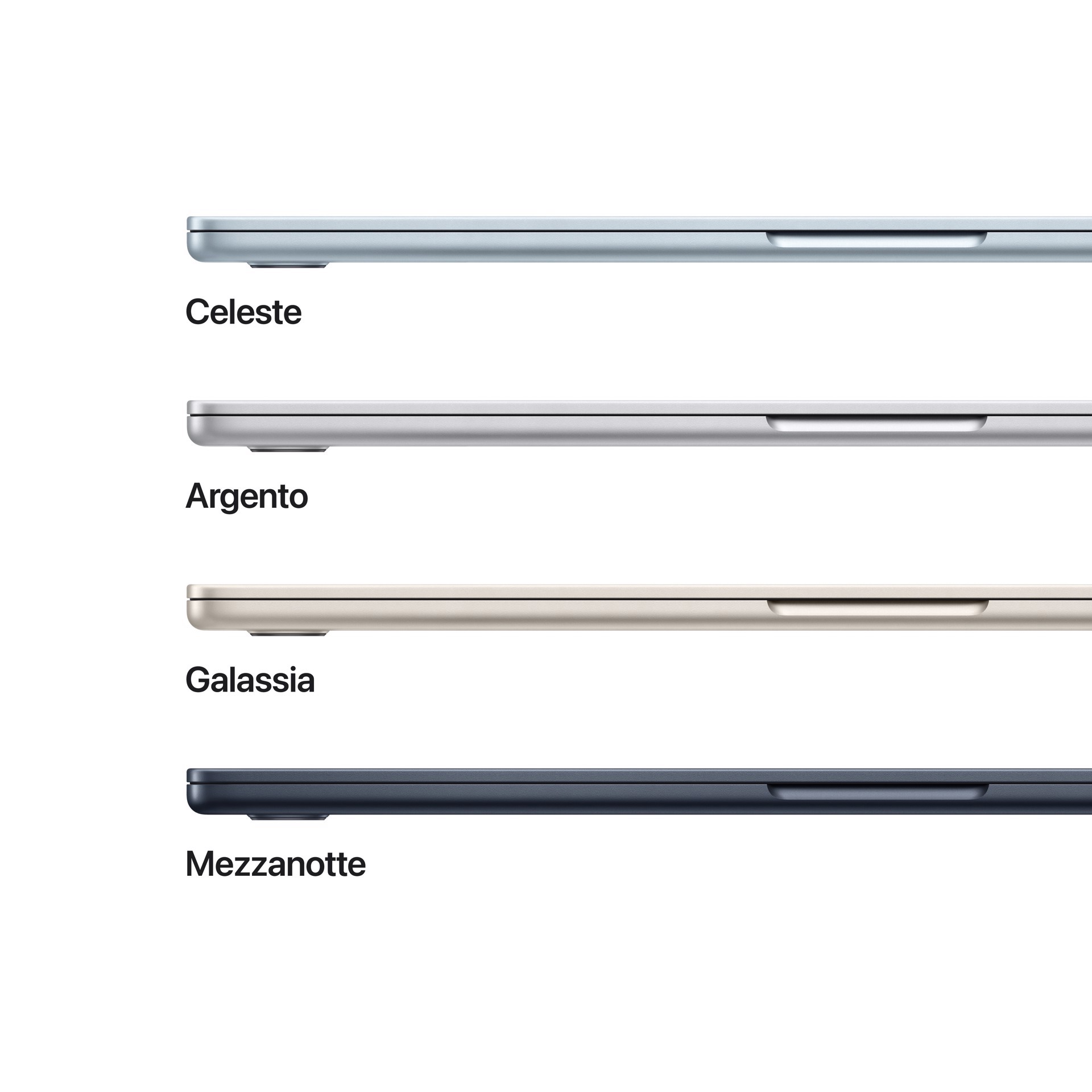 | Software pre-installato | App Store, Books, Calendar, Contacts, FaceTime, Find My, Freeform, GarageBand, Home, iMovie, iPhone Mirroring, Keynote, Mail, Maps, Messages, Music, News, Notes, Numbers, Pages, Passwords, Photo Booth, Photos, Podcasts, Preview, QuickTime Player, Reminders, Safari, Shortcuts, Stocks, Time Machine, Tips, TV, Voice Memos, Weather |