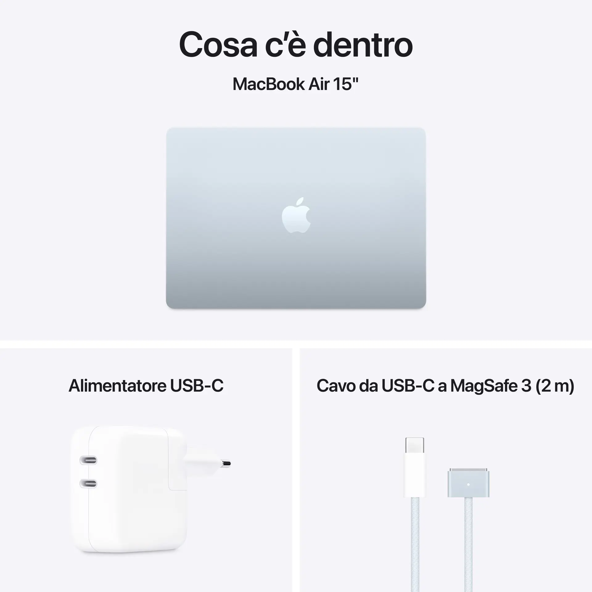 | Software pre-installato | App Store, Books, Calendar, Contacts, FaceTime, Find My, Freeform, GarageBand, Home, iMovie, iPhone Mirroring, Keynote, Mail, Maps, Messages, Music, News, Notes, Numbers, Pages, Passwords, Photo Booth, Photos, Podcasts, Preview, QuickTime Player, Reminders, Safari, Shortcuts, Stocks, Time Machine, Tips, TV, Voice Memos, Weather |