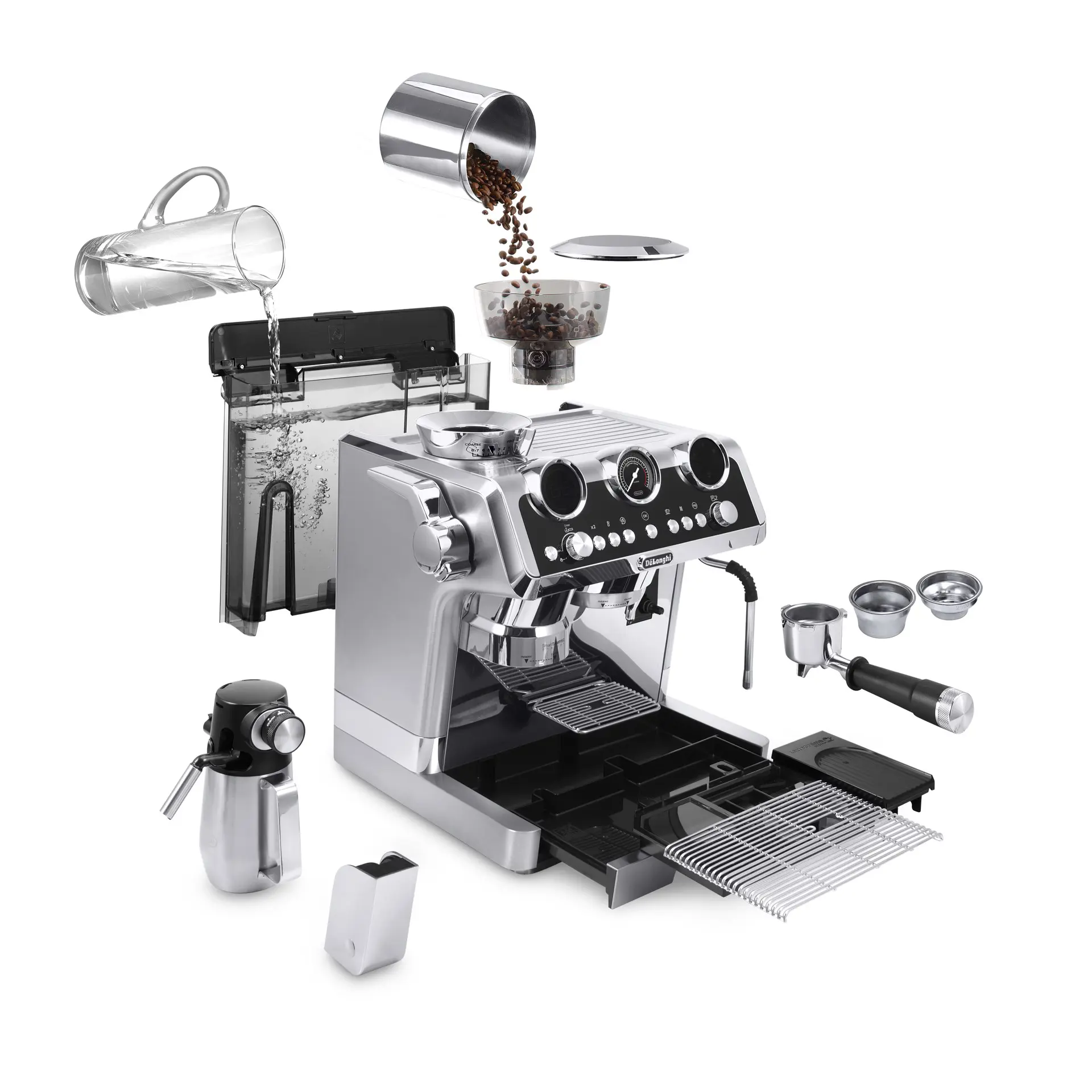 De’Longhi EC9665.M, Macchina per espresso, 2 L, Chicchi di caffè, Macinatore integrato, 1450 W, Acciaio inossidabile