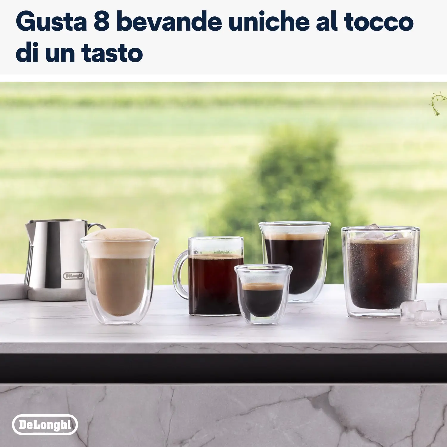 Divertiti a interagire con l’intuitivo display a colori full-touch da 3,5”, con ricche animazioni. Rivelia impara la tua routine di caffè e prepara le tue bevande preferite durante il giorno, per un’esperienza di caffè immersiva su misura per te, con un massimo di 4 profili utente.