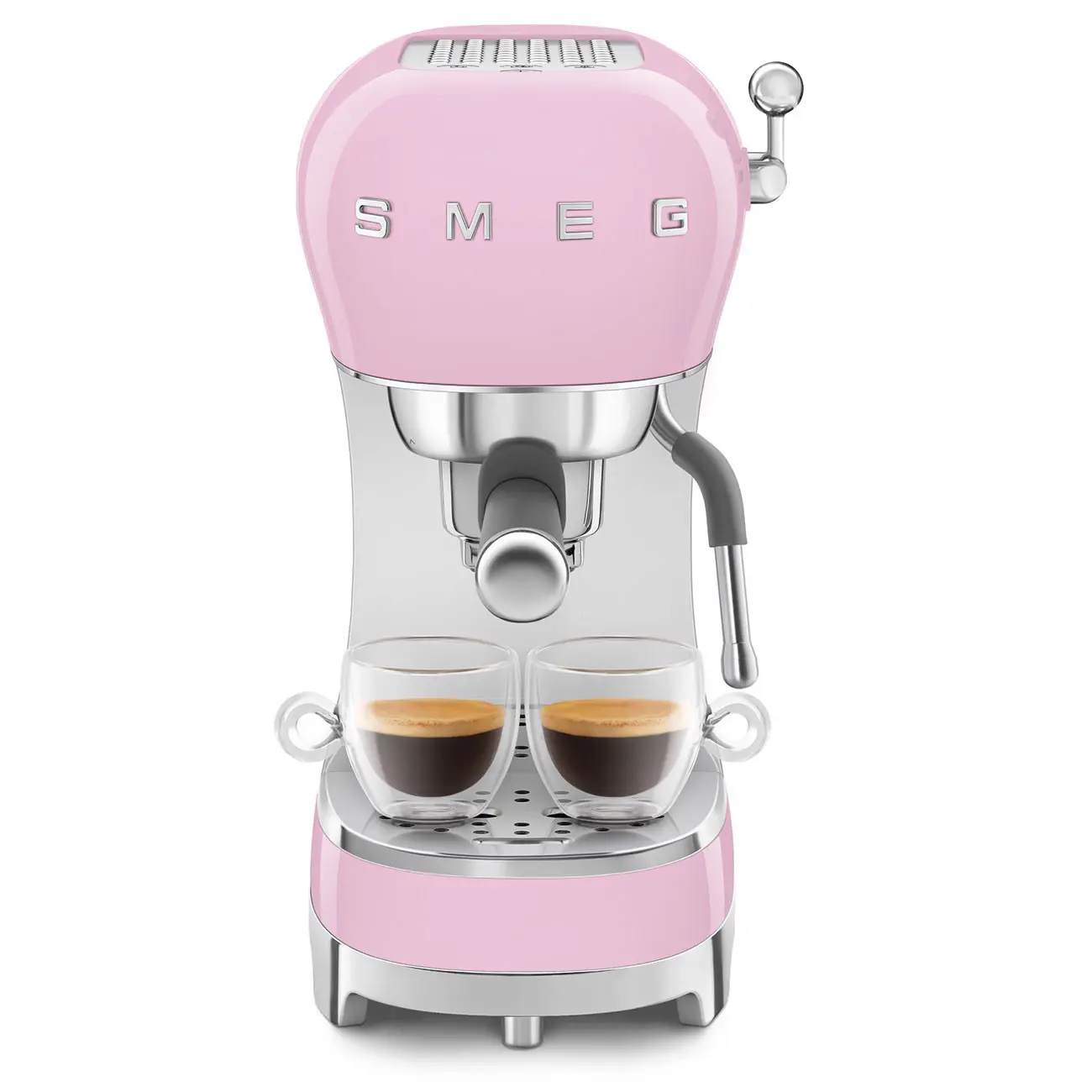 Smeg ECF02PKEU. Tipo di prodotto: Macchina per espresso, Tipologia macchina del caffé: Manuale, Capacità tanica acqua: 1,1 L, Tipologia di caffè utilizzato: Caffè macinato, Vaschetta per caffè preparato: Tazza, Capacità in tazze: 2 tazze, Numero di erogatori: 2. Potenza: 1350 W. Colore del prodotto: Rosa, Acciaio inox