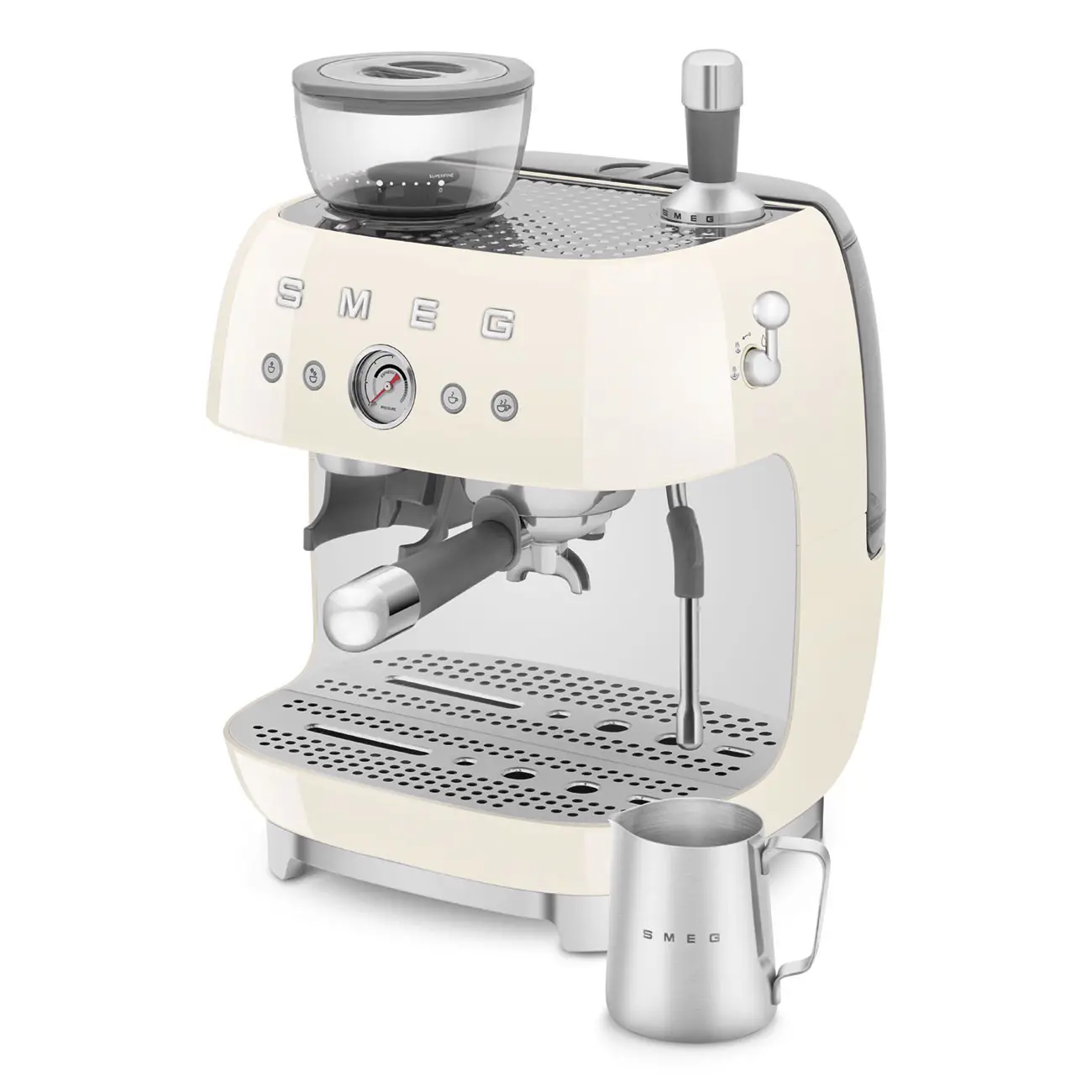 Smeg Macchina da Caffè Espresso Manuale con macinacaffè integrato 50's Style – Panna LUCIDO – EGF03CREU