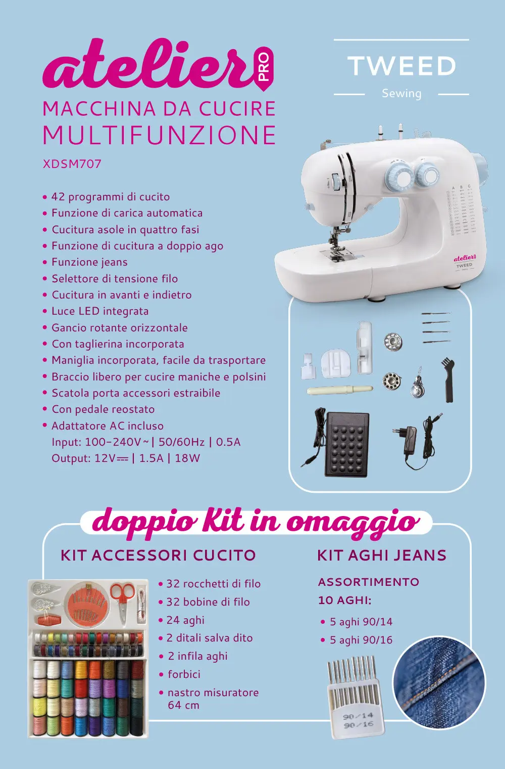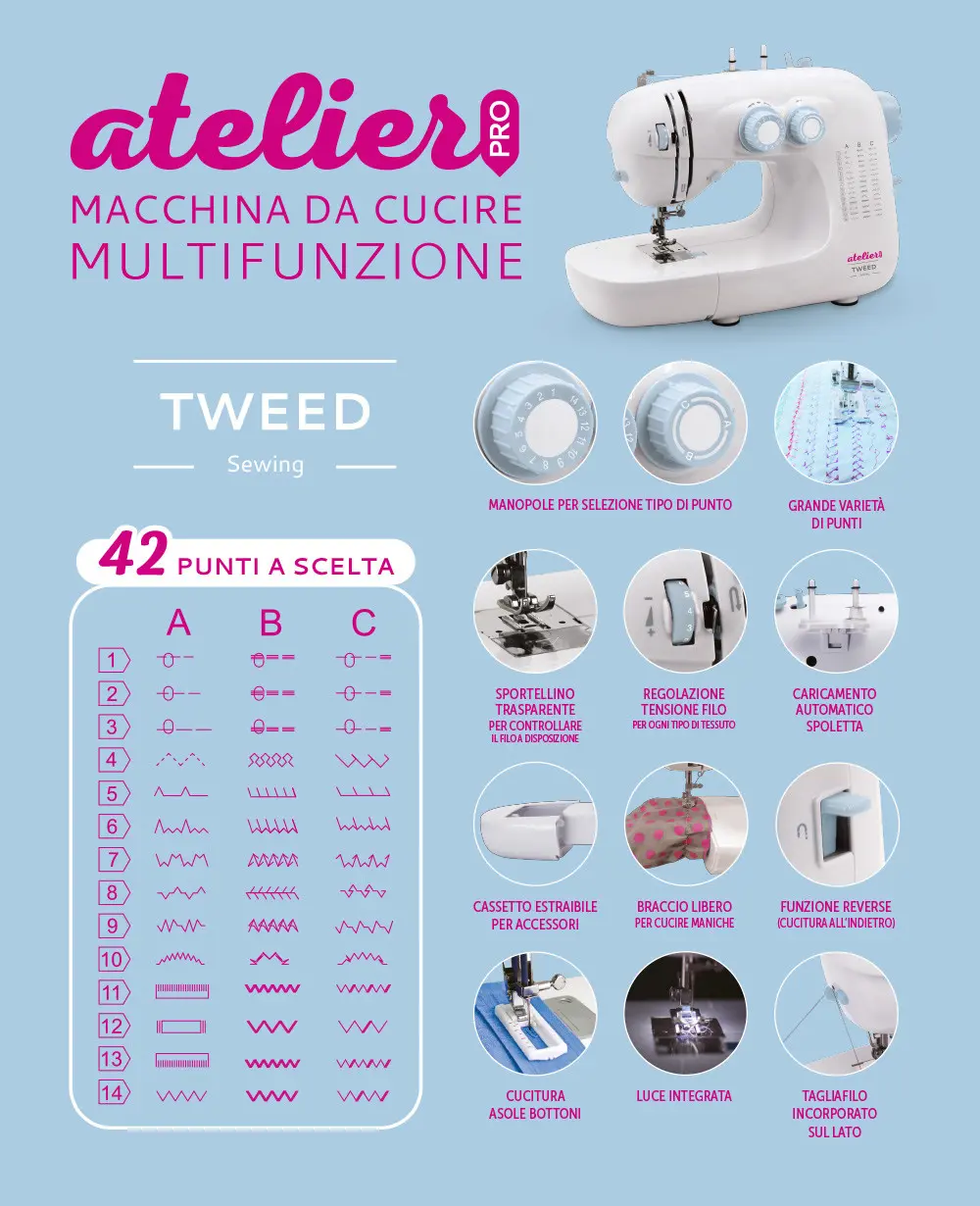 TWEED Atelier Macchina da cucire automatica 42 operazioni braccio libero XDSM707