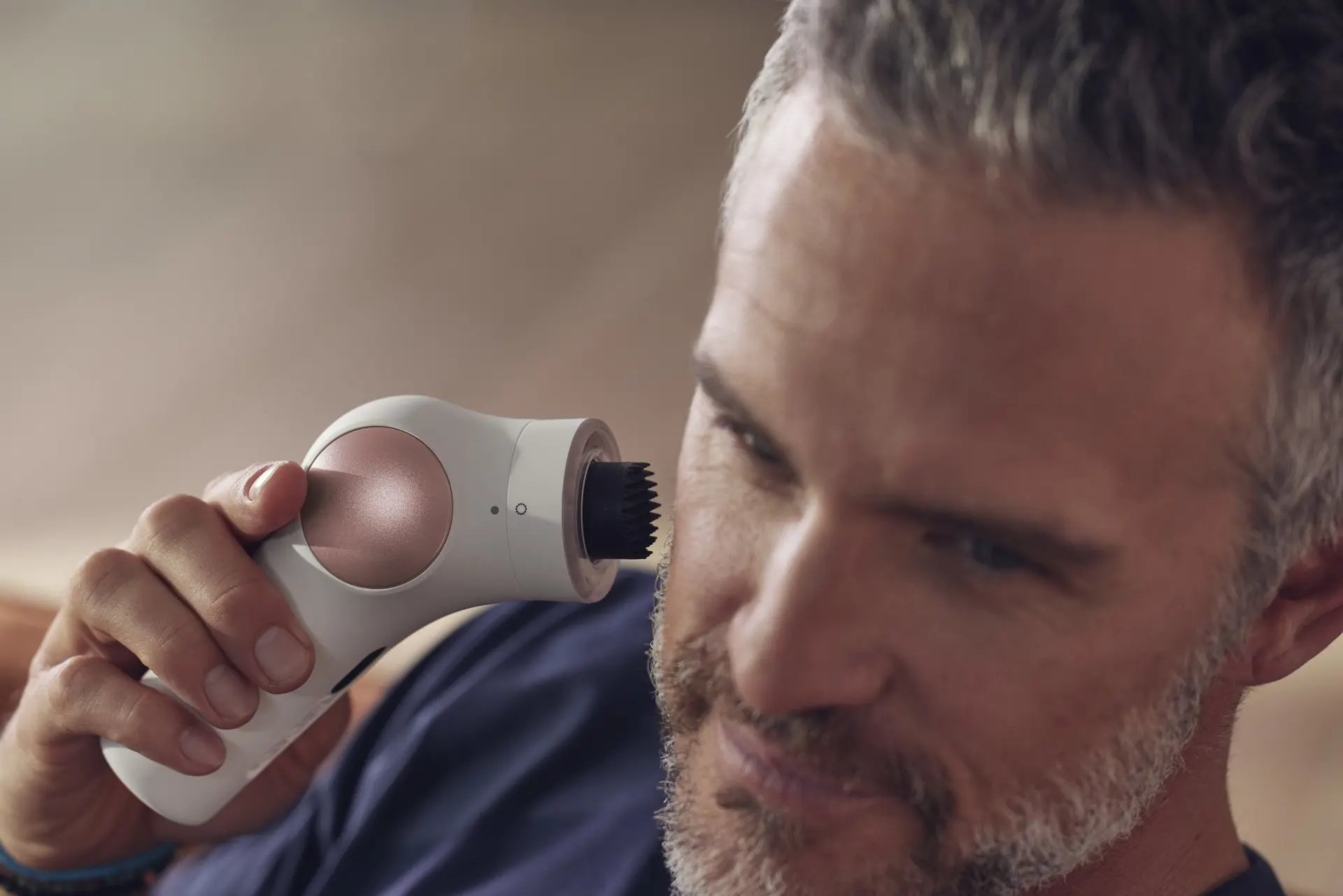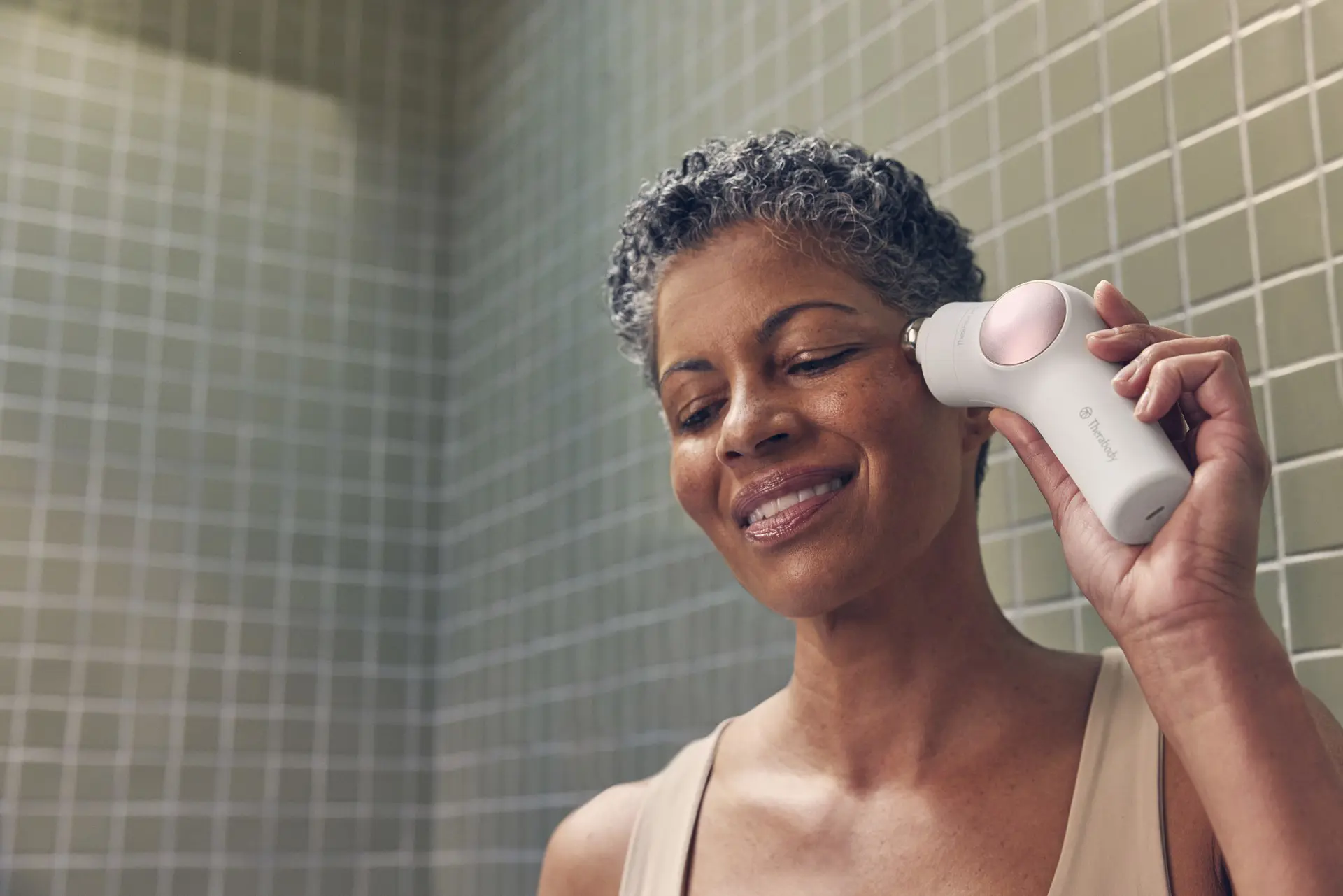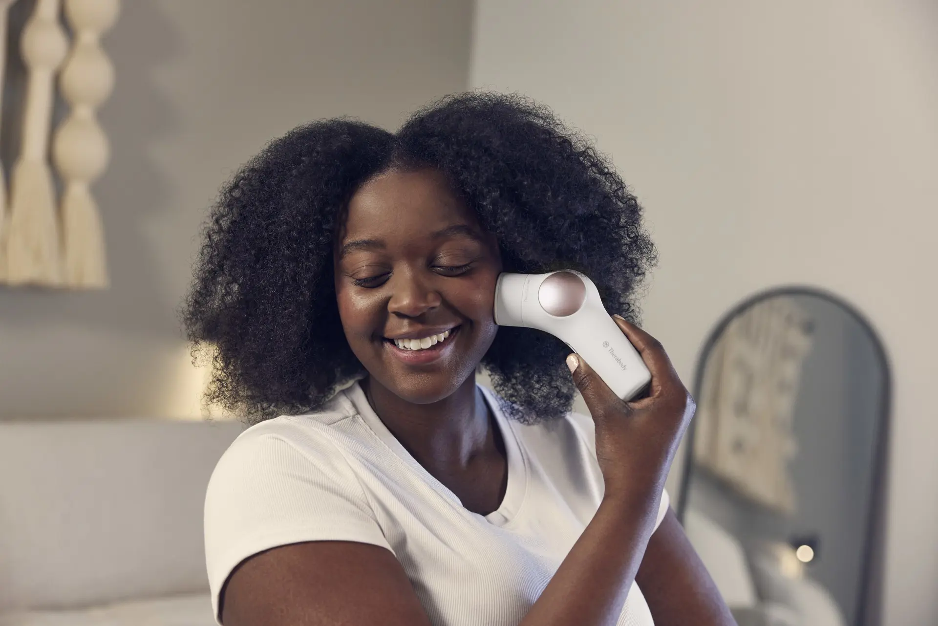La celebre tecnologia a percussione di Therabody viene applicata al viso per ridurre la tensione e rilassare i muscoli prendendosene cura a livello più profondo, in una vera e propria terapia per la salute del viso.