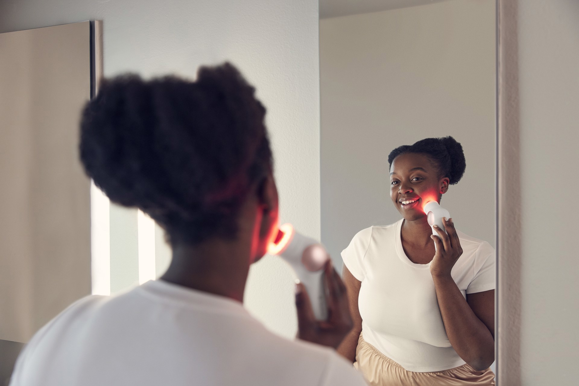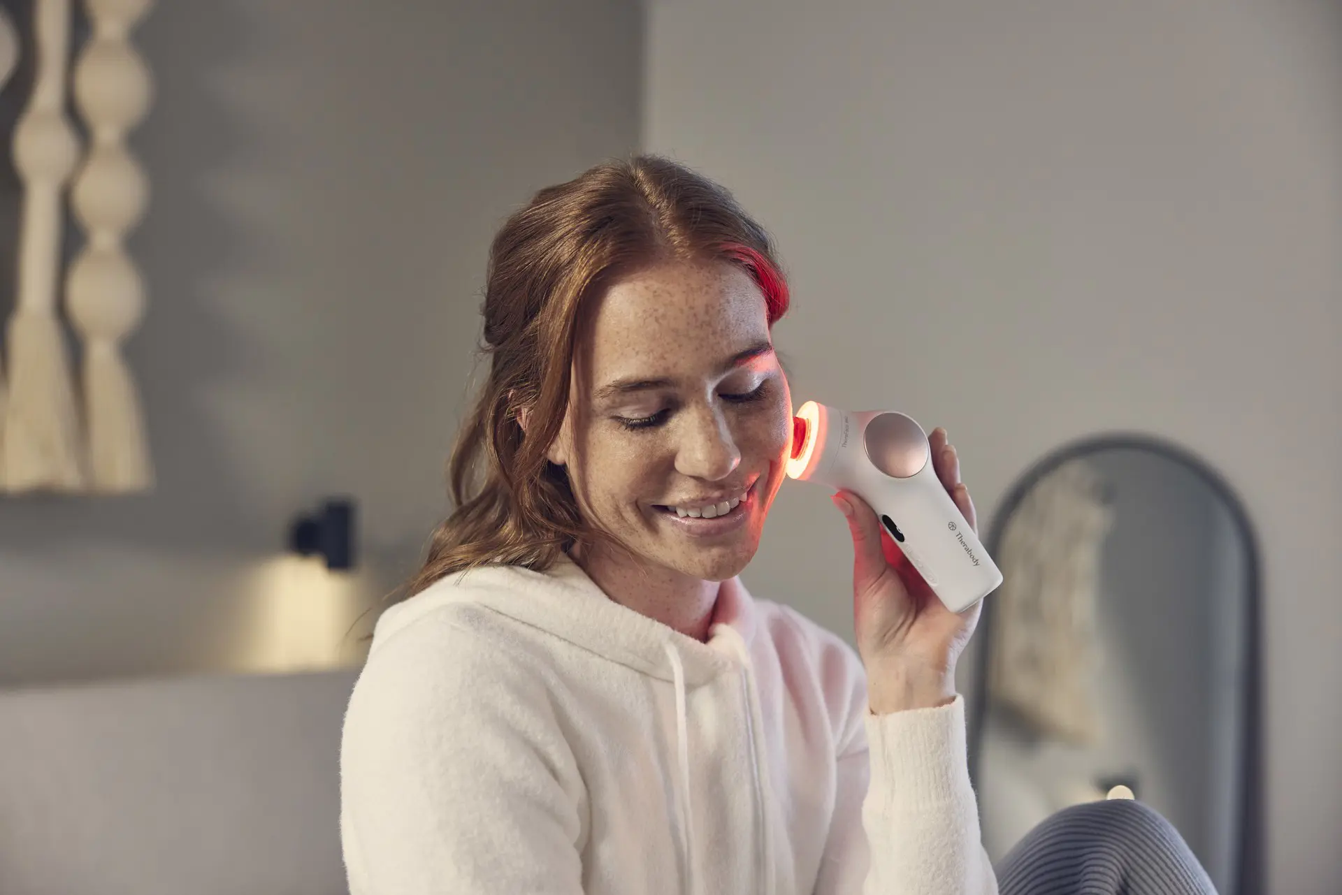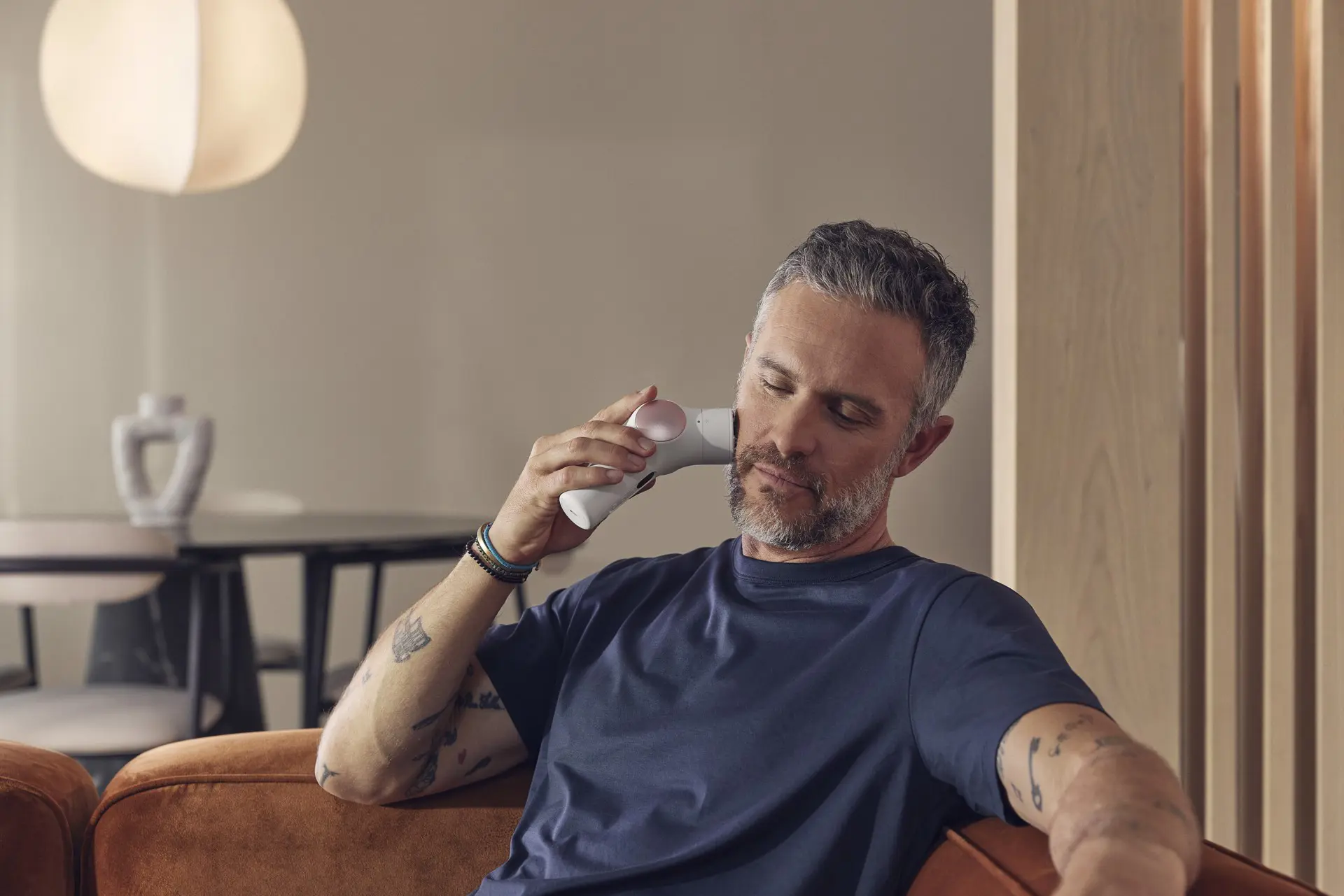 La celebre tecnologia a percussione di Therabody viene applicata al viso per ridurre la tensione e rilassare i muscoli prendendosene cura a livello più profondo, in una vera e propria terapia per la salute del viso.