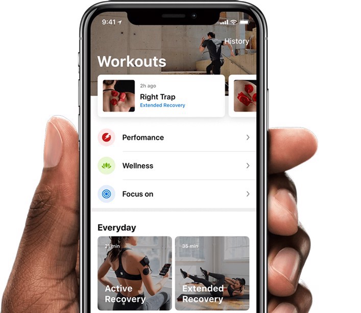 La precisione del posizionamento degli elettrodi, il livello di intensità e la durata della sessione di qualsiasi stimolazione muscolare sono di fondamentale importanza per la sicurezza e l’efficacia. Ecco perché la nostra app smart trova la combinazione precisa per te, tenendo conto in modo intelligente del livello di affaticamento, delle attività recenti e delle tue particolari esigenze.