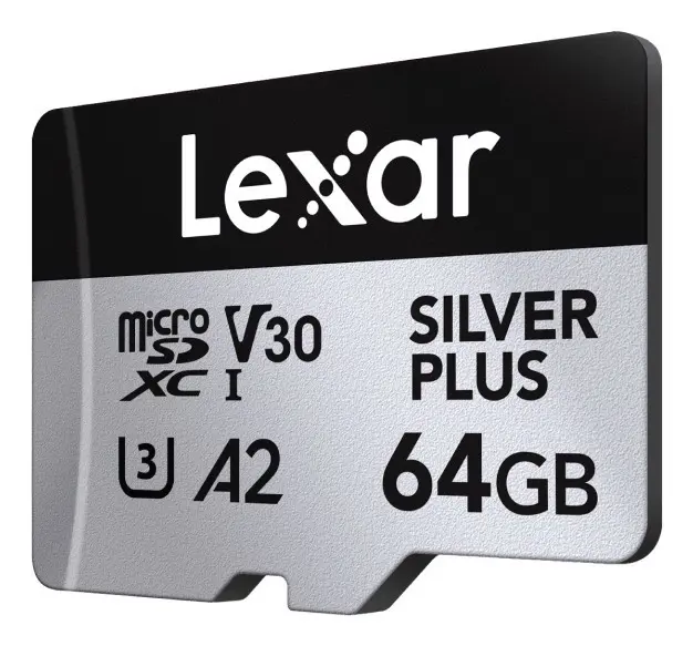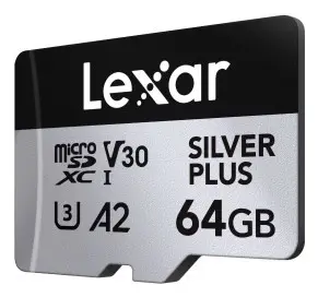 Lexar Professional SILVER PLUS. Capacità: 64 GB, Tipo flash card: MicroSDXC, Classe di memoria flash: Classe 3, Tipo di RAM: UHS-I, Velocità di lettura: 205 MB/s, Velocità di scrittura: 100 MB/s, Classe di velocità UHS: Class 3 (U3), Classe di velocità video: V30. Funzioni di protezione: A prova di temperatura, A prova di magnete, Resistente agli urti, A prova di raggi X, Resistente..., Colore del prodotto: Nero, Argento