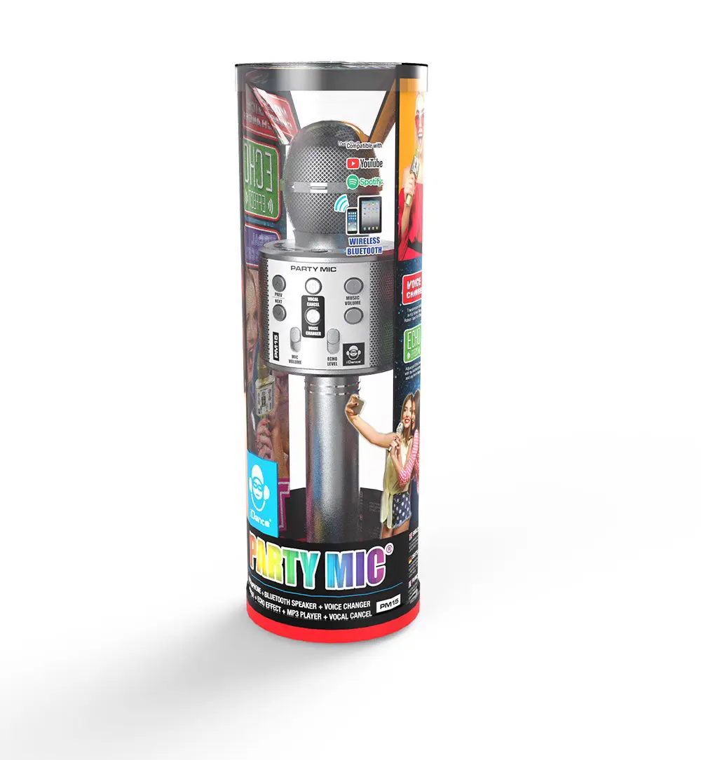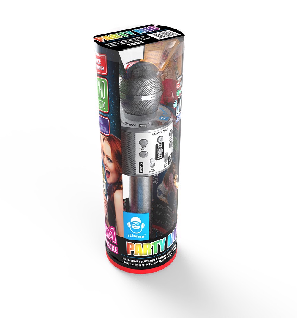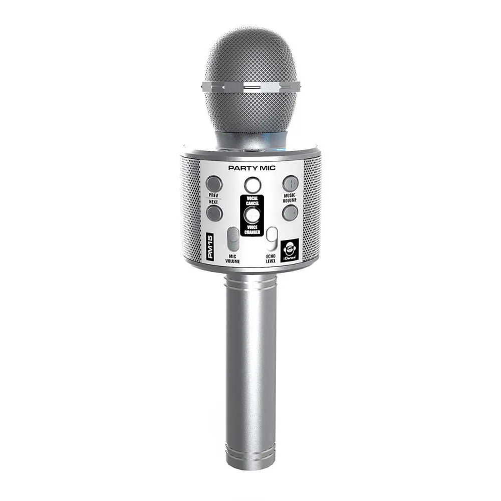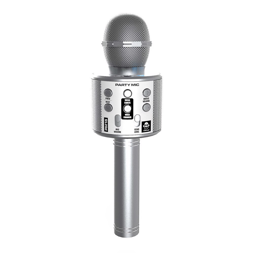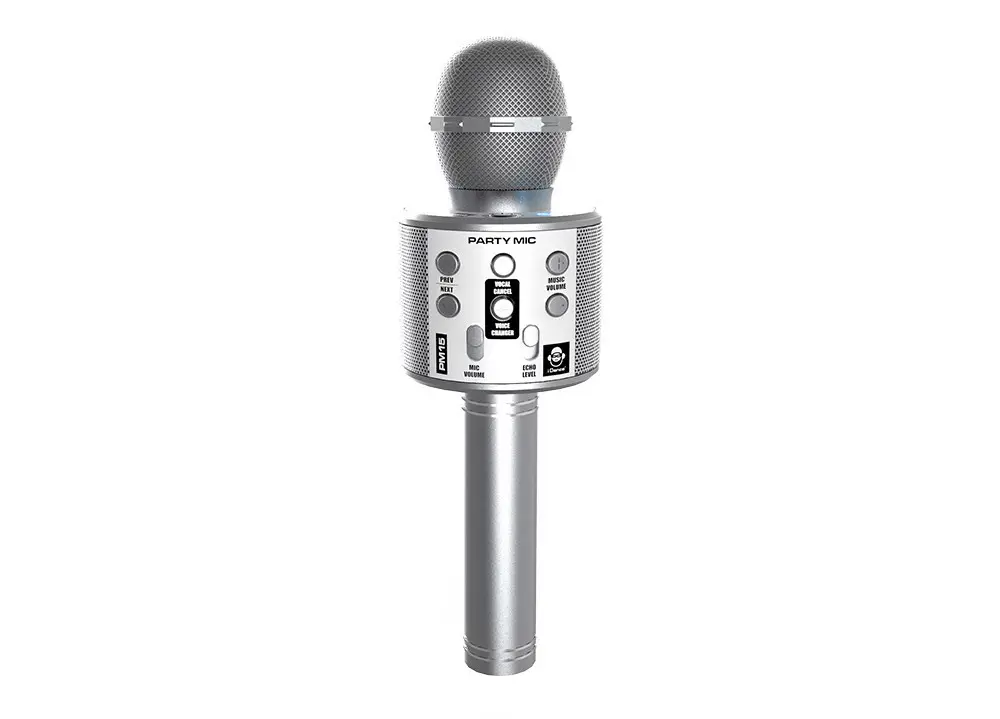iDance PARTY MIC, Microfono per karaoke, 80 dB, Wireless, Bluetooth, Argento, 20 W