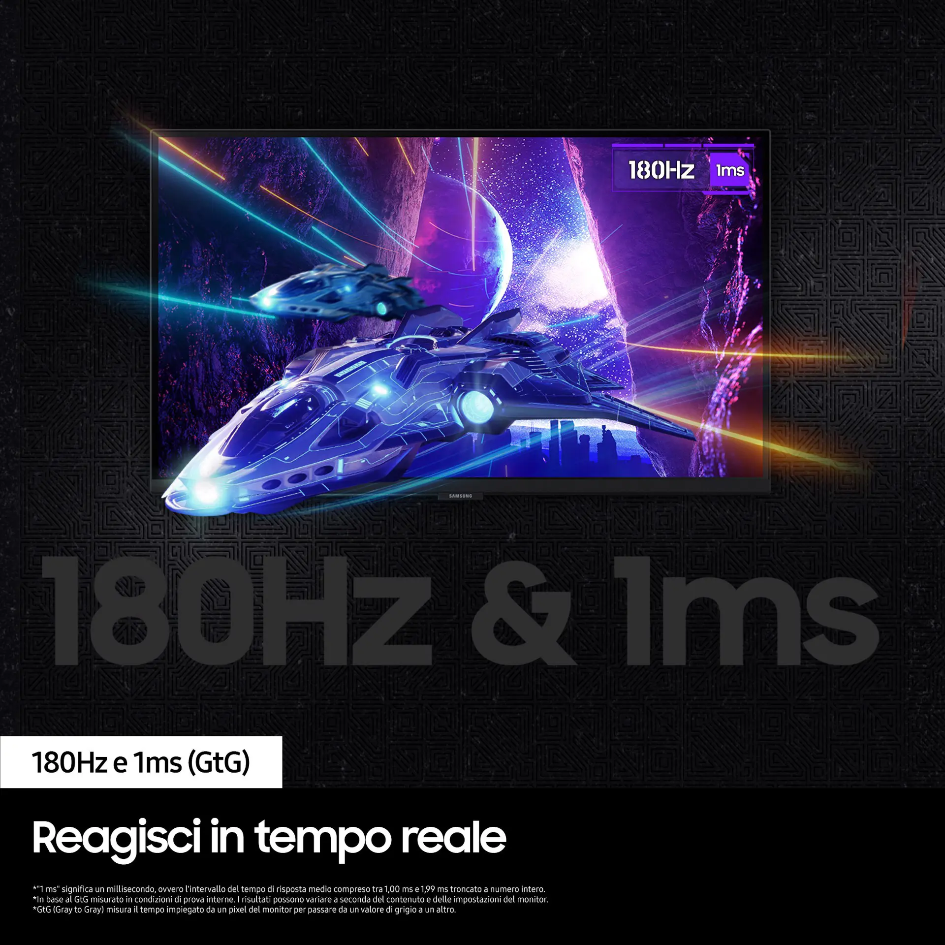 Passa rapidamente da una scena all’altra. La frequenza di aggiornamento di 180Hz elimina il ritardo nella risposta, per una sessione di gioco intensa, con azioni eccezionalmente fluide. Attacca i nemici nel momento stesso in cui li vedi, con un tempo di risposta di 1ms (GtG) e fotogrammi con un effetto mosso impercettibile.
