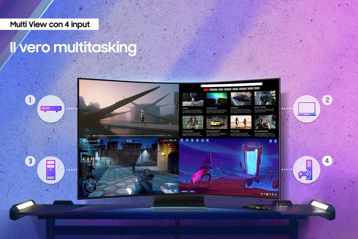 La tua esperienza di visione non sarà mai più la stessa. Collega e guarda fino a 4 sorgenti in una volta sola con la funzione Multi View avanzata. Se vuoi, puoi persino lanciare giochi per console e PC contemporaneamente. Resta concentrato sull’azione mentre contatti gli amici e decidete la strategia vincente tutti insieme, sullo stesso schermo, senza cavi e disordine sulla scrivania.