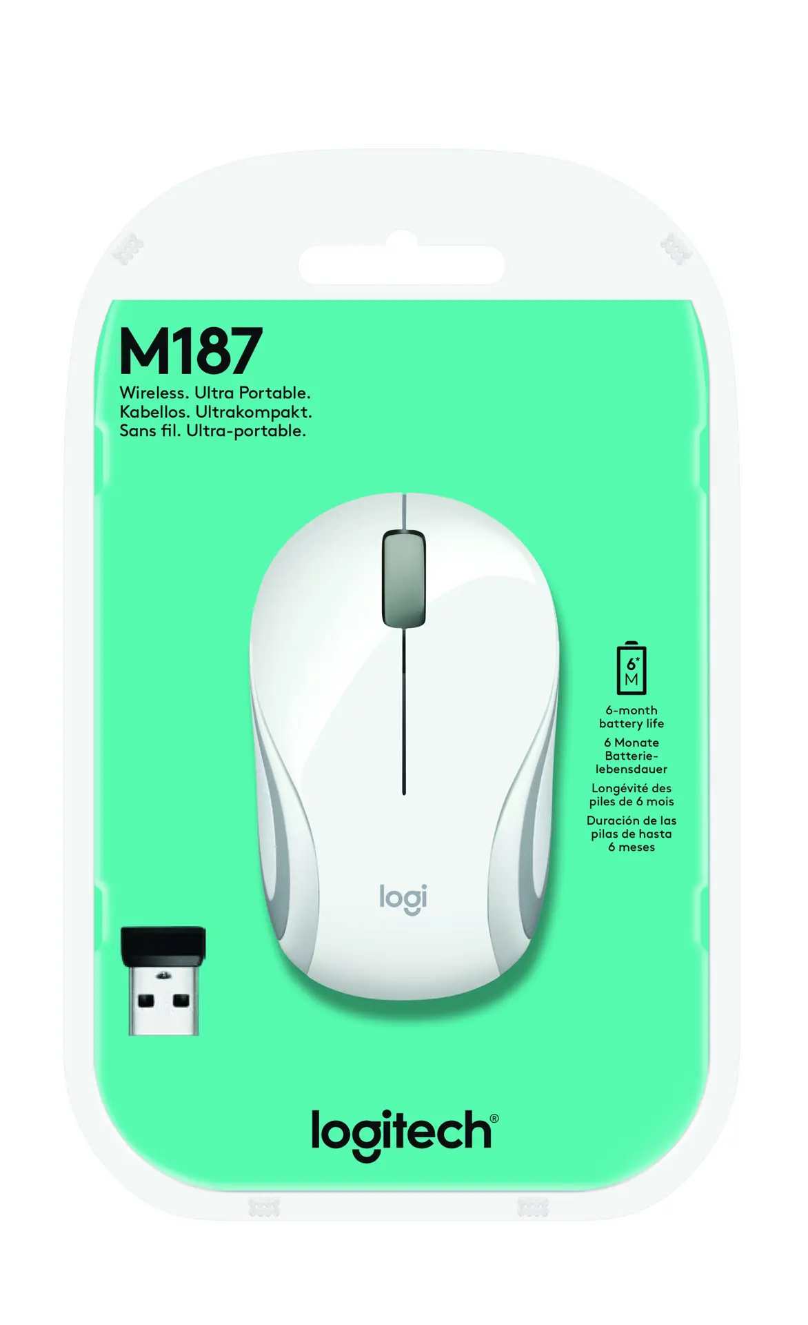 Mouse wireless ultraportatile Logitech M187. Portalo ovunque porti il laptop grazie alle dimensioni ridotte e tascabili. Inoltre, la configurazione è semplicissima. È sufficiente inserire il microricevitore e puoi iniziare subito a usare il mouse. La libertà del wireless con maggiore precisione e controllo del touchpad del laptop.